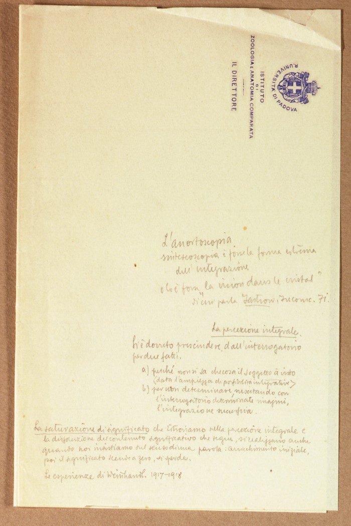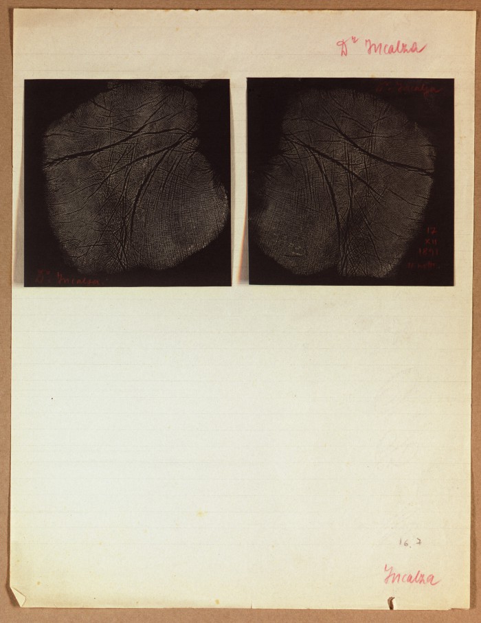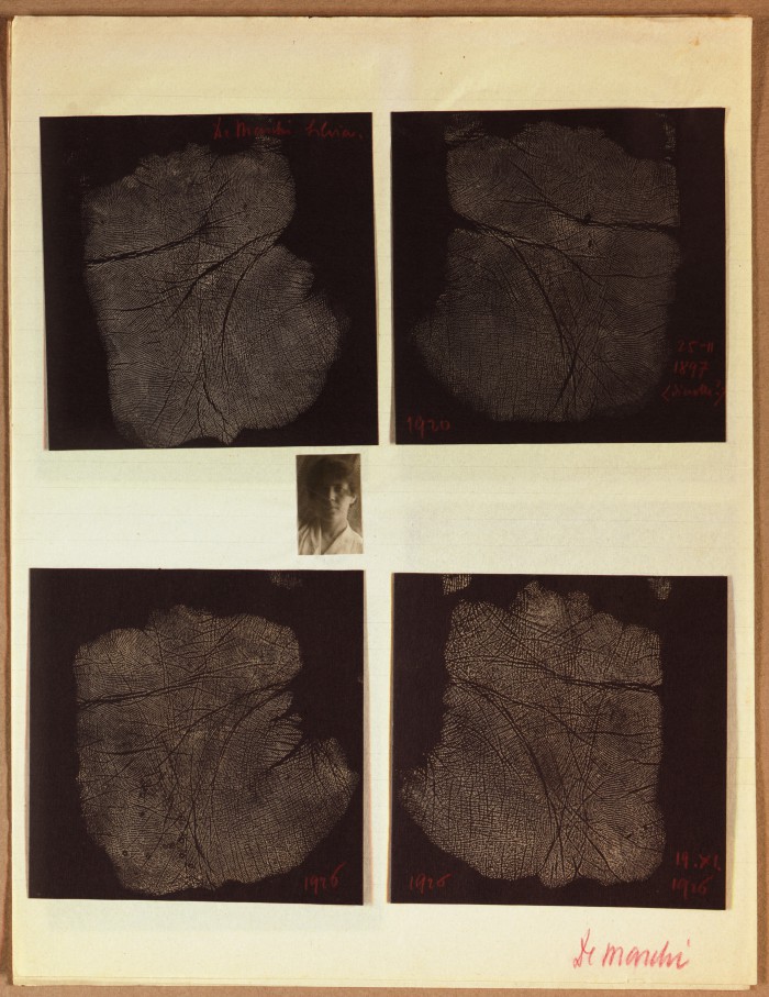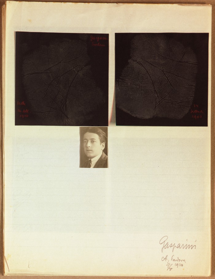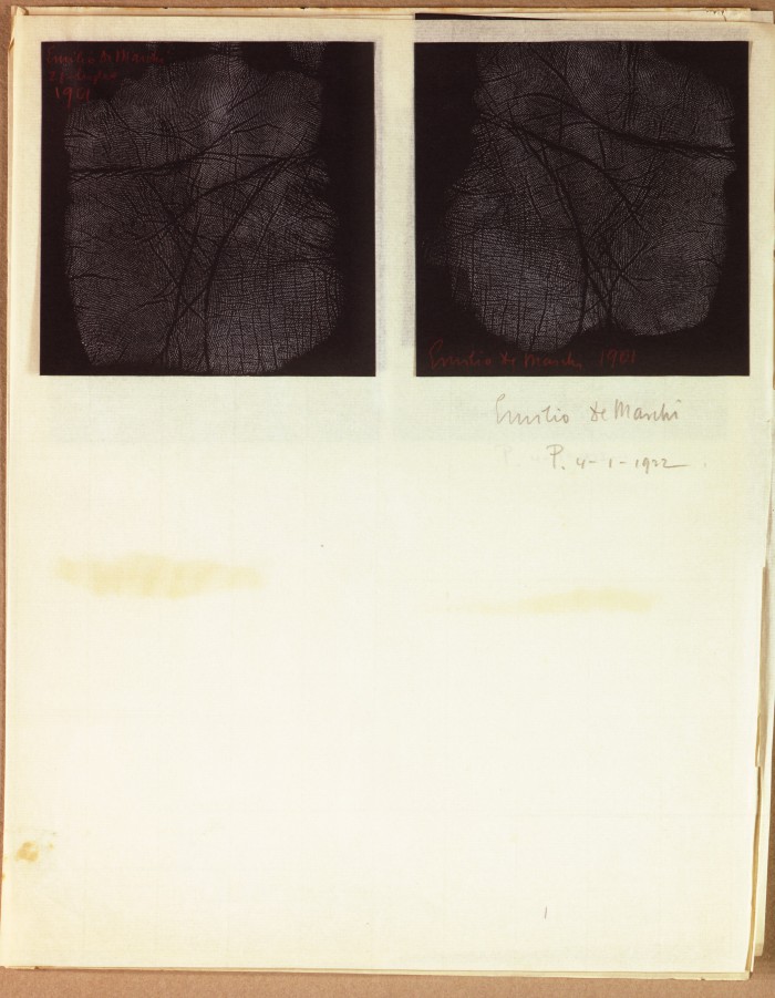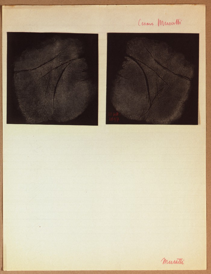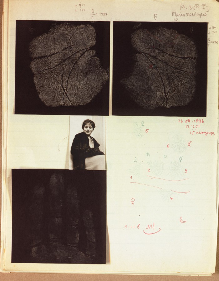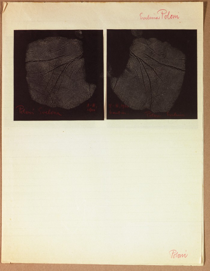 Il fascicolo comprende appunti sulla percezione integrale e diverse impronte palmari (con nominativo del soggetto e data dell’analisi). Di alcuni soggetti c’è anche la fotografia.