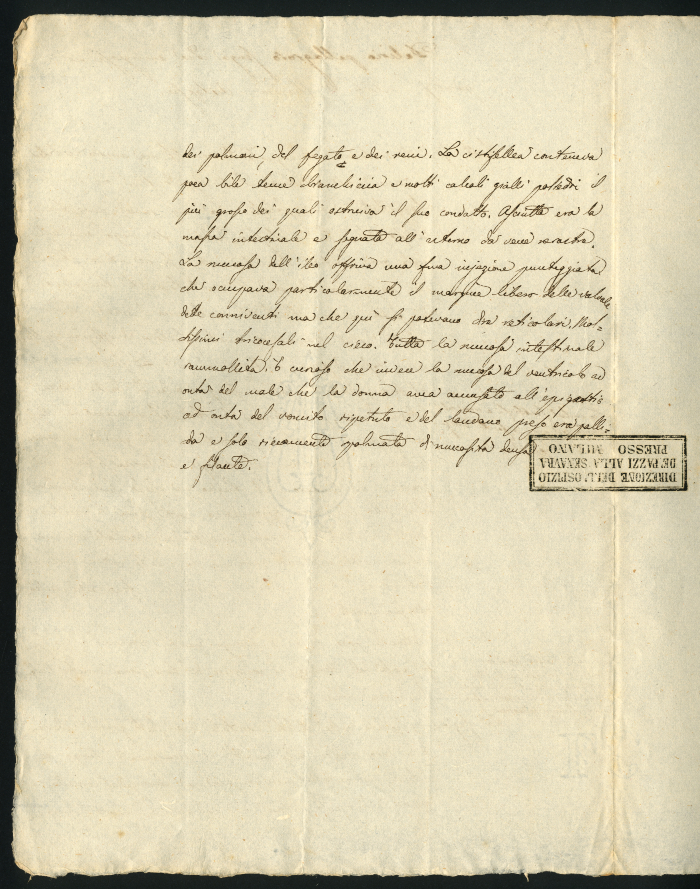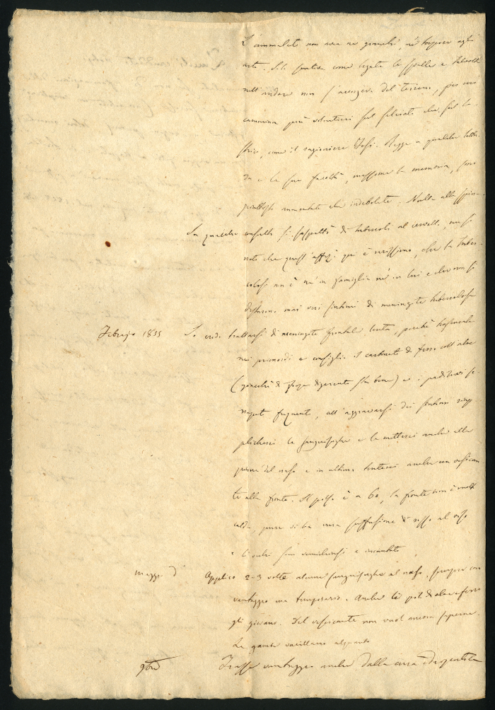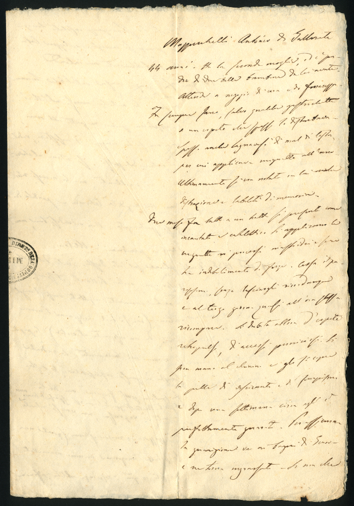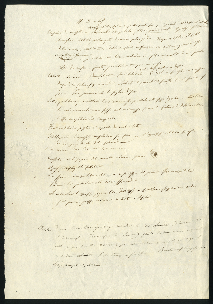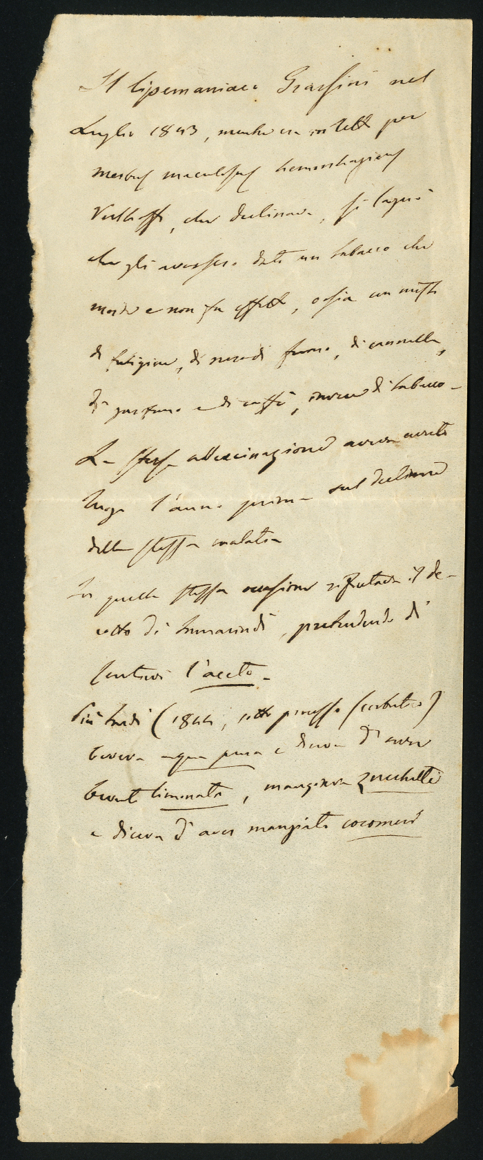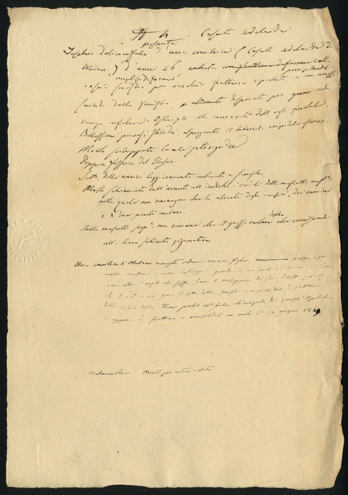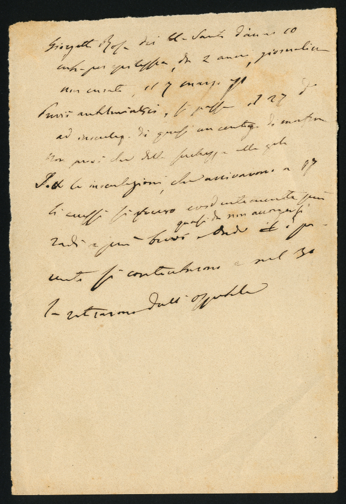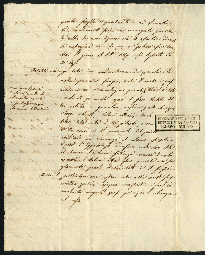 80) Pallavicino [Trivulzio] Giorgio, patriota, gran collare dell'Annunciata, prodittatore a Napoli: domande rivolte al dottor Verga in merito alla cura indicata dal prof. Verdona, con relative risposte scritte in settembre da Cannobio, appunti sullo stato di salute del malato. Melancolia senile.
