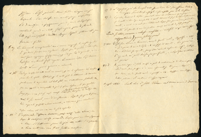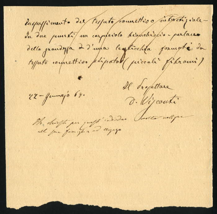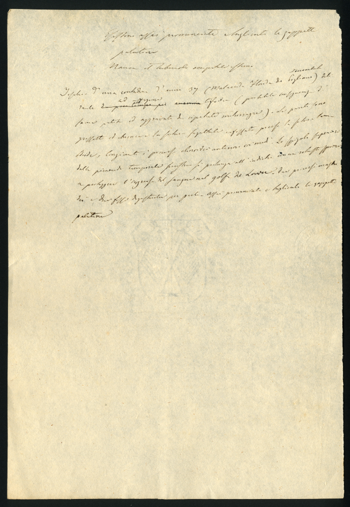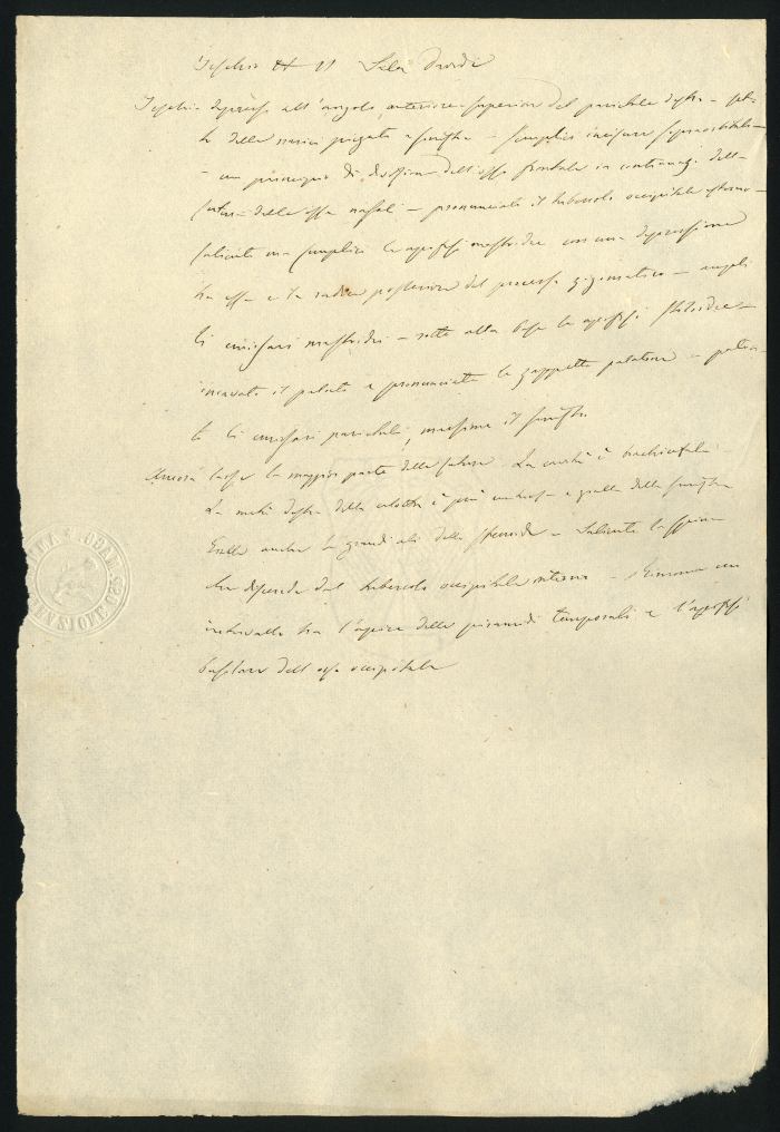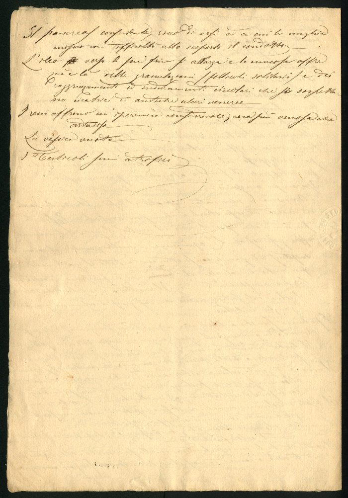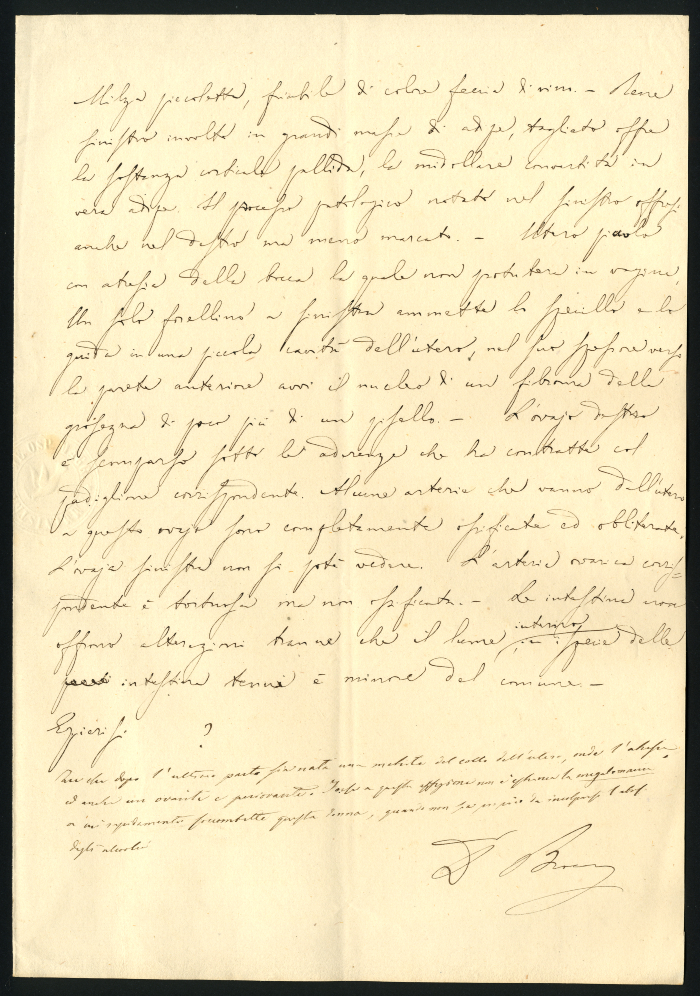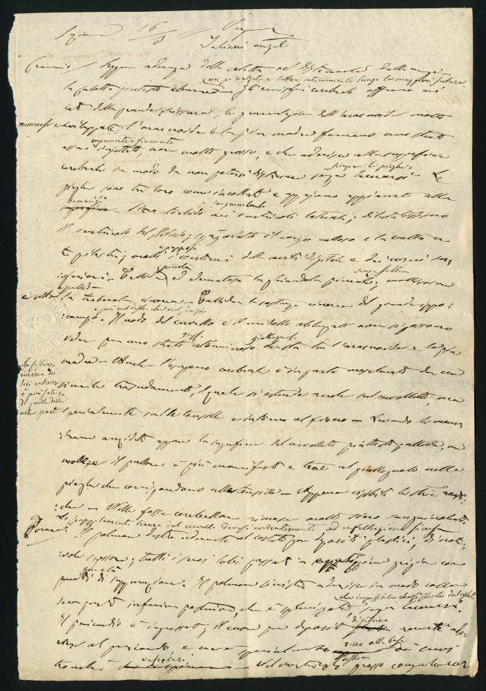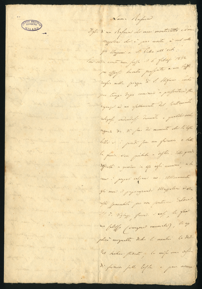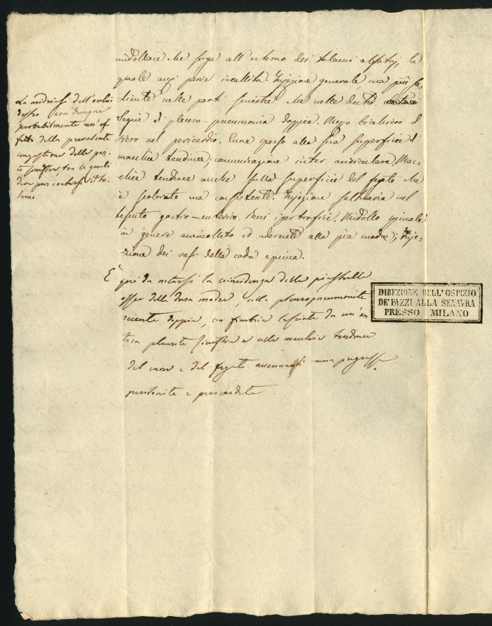 80) Pallavicino [Trivulzio] Giorgio, patriota, gran collare dell'Annunciata, prodittatore a Napoli: domande rivolte al dottor Verga in merito alla cura indicata dal prof. Verdona, con relative risposte scritte in settembre da Cannobio, appunti sullo stato di salute del malato. Melancolia senile.