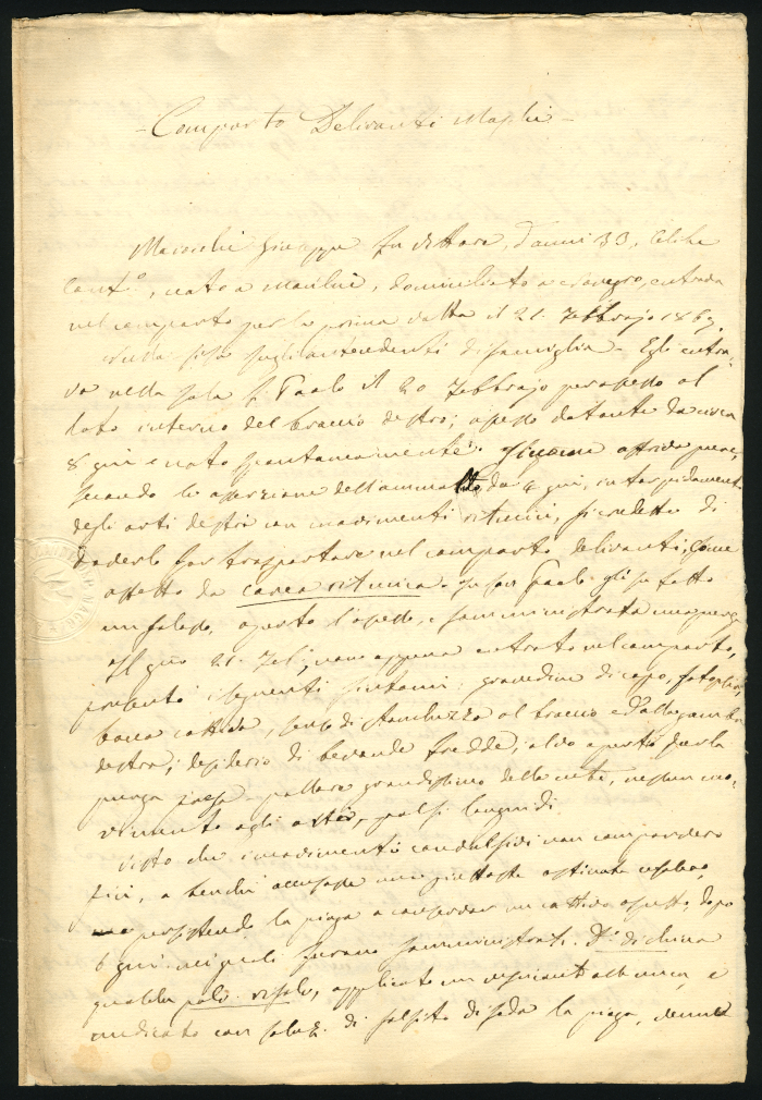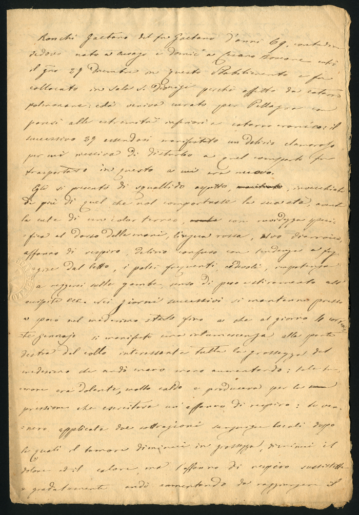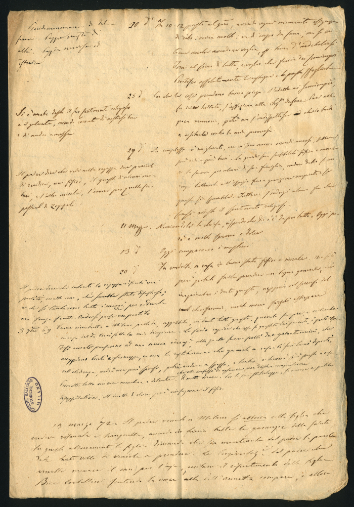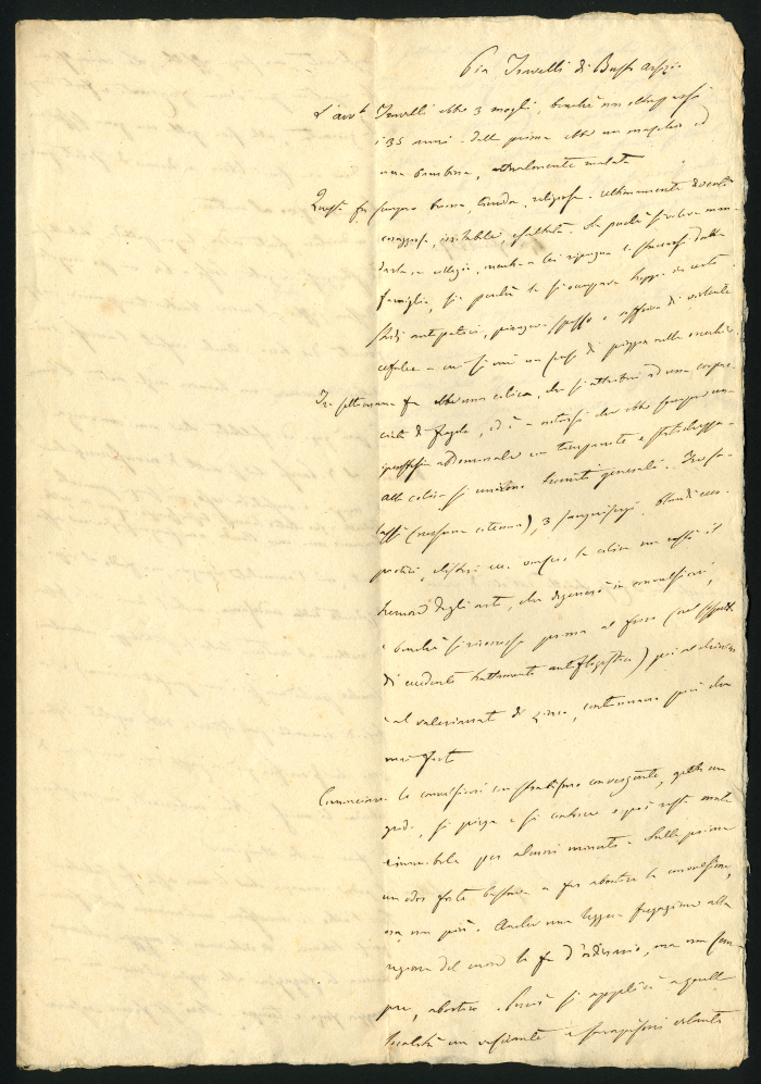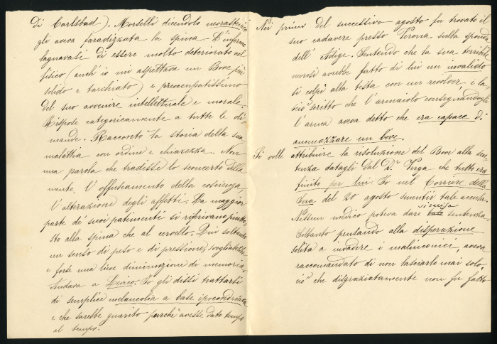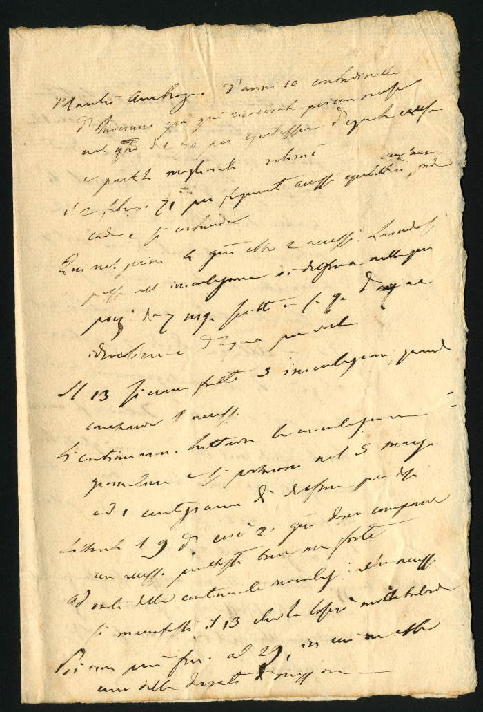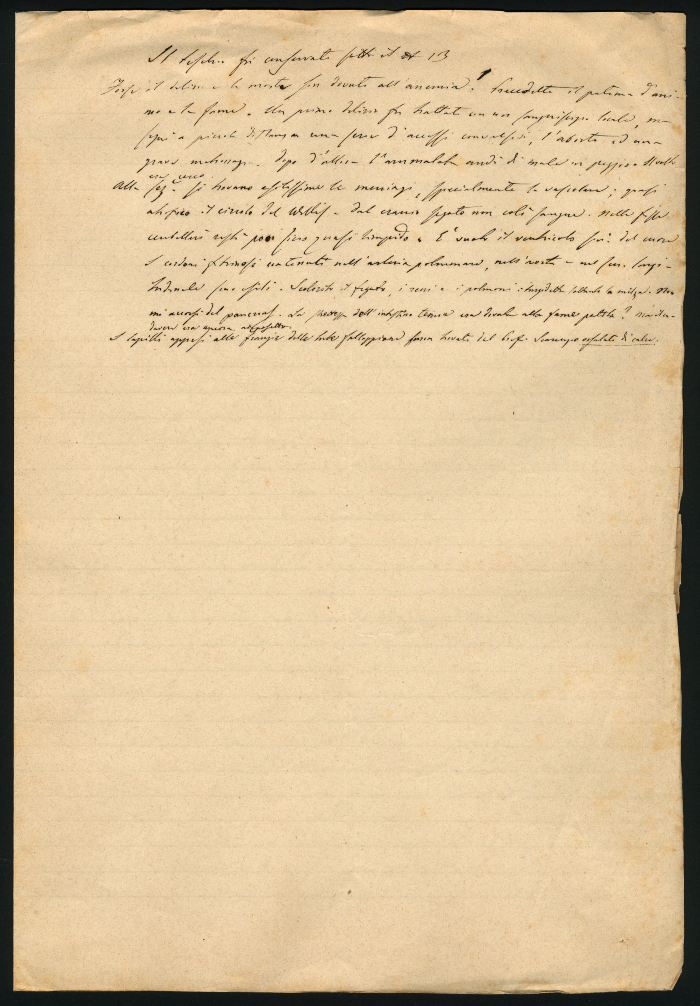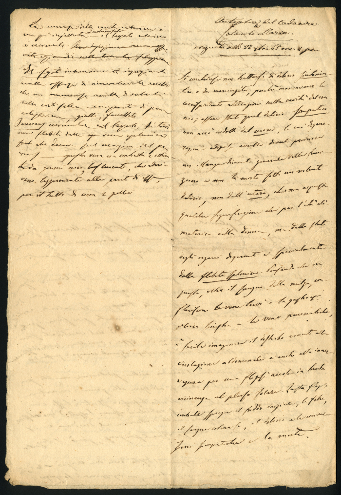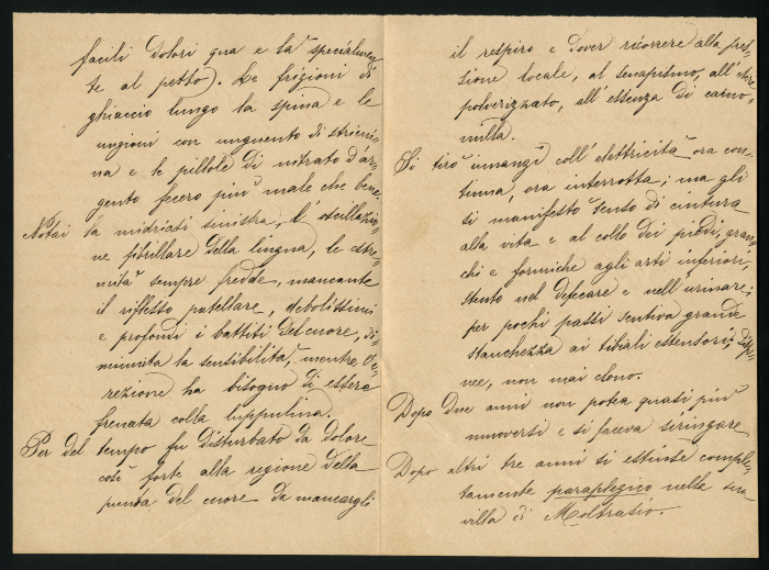 80) Pallavicino [Trivulzio] Giorgio, patriota, gran collare dell'Annunciata, prodittatore a Napoli: domande rivolte al dottor Verga in merito alla cura indicata dal prof. Verdona, con relative risposte scritte in settembre da Cannobio, appunti sullo stato di salute del malato. Melancolia senile.