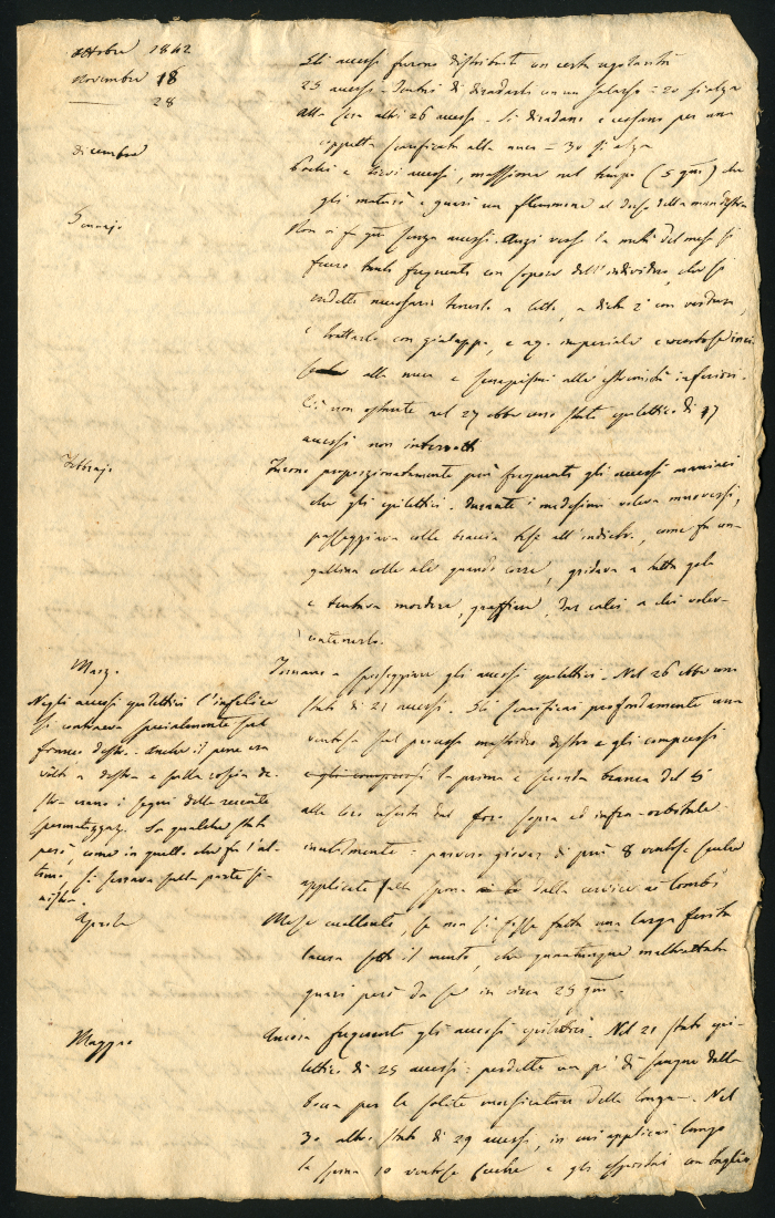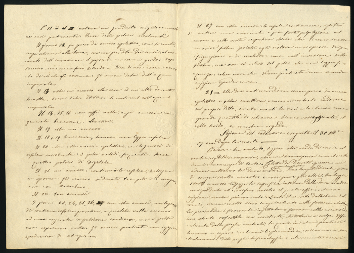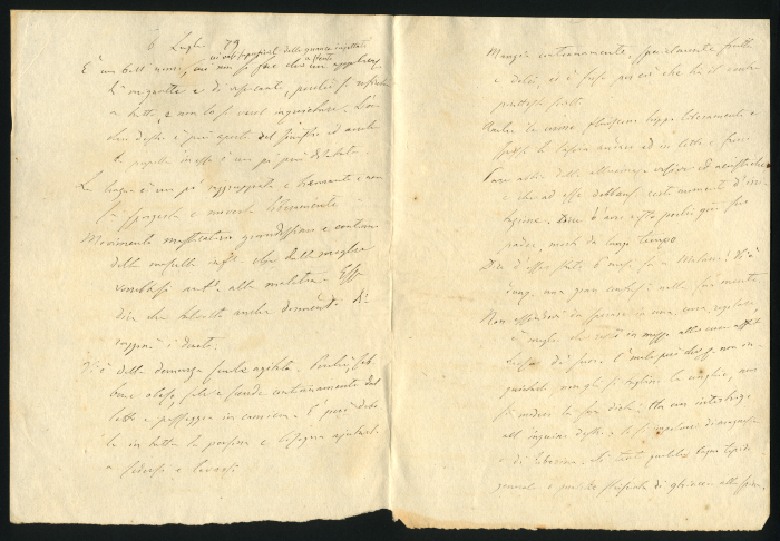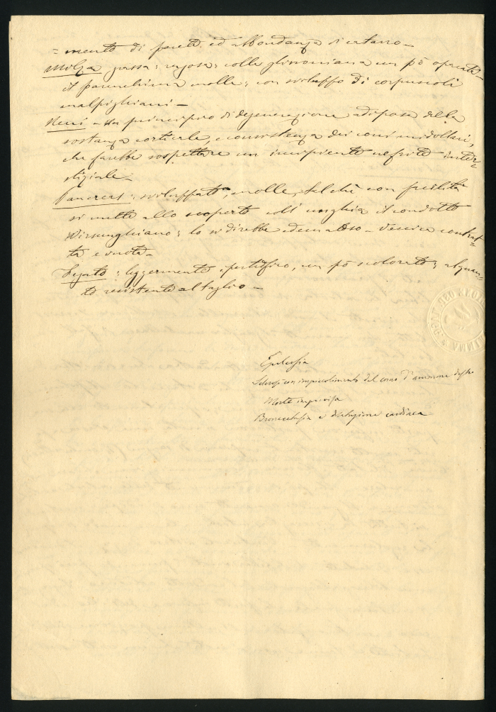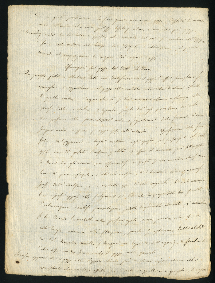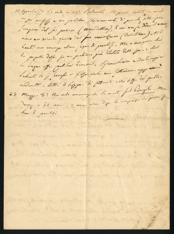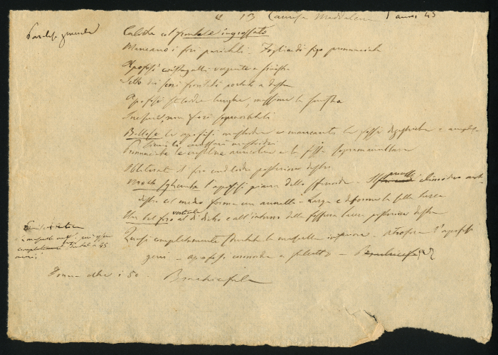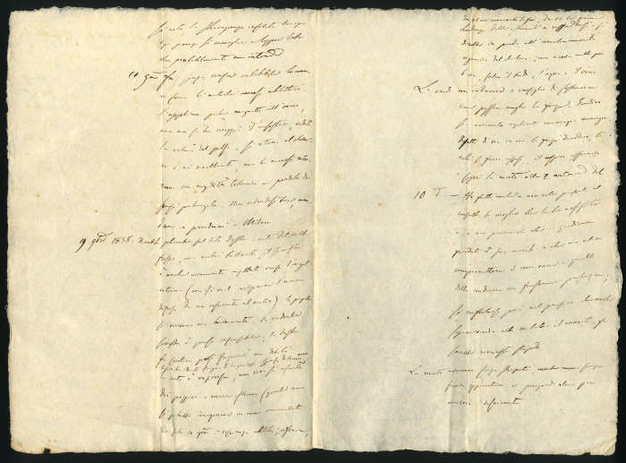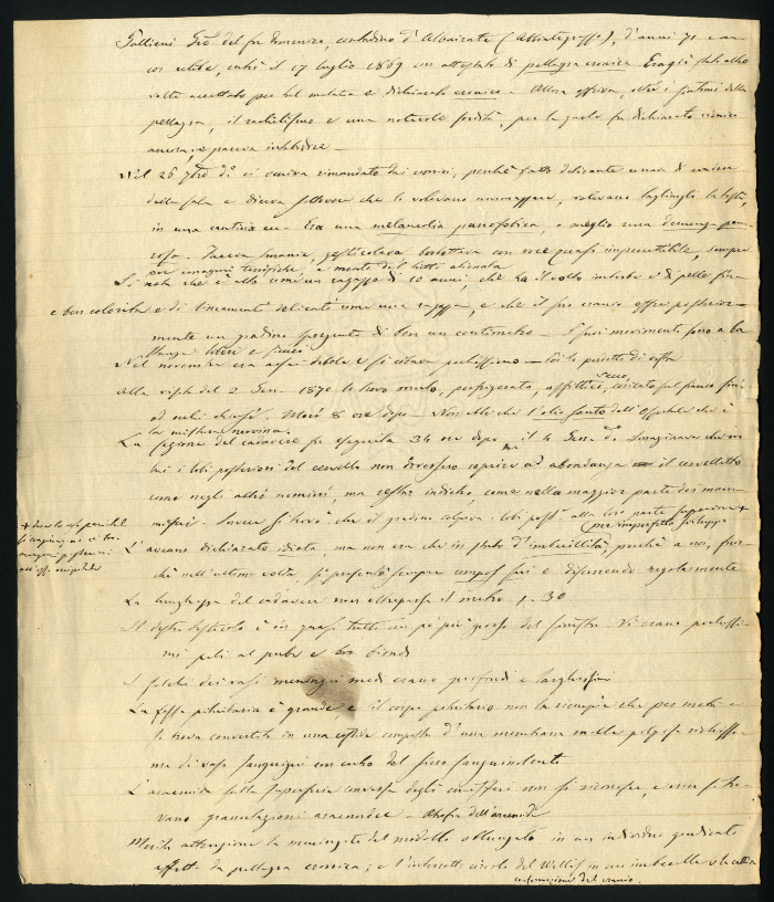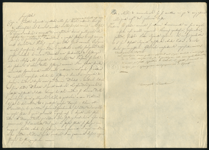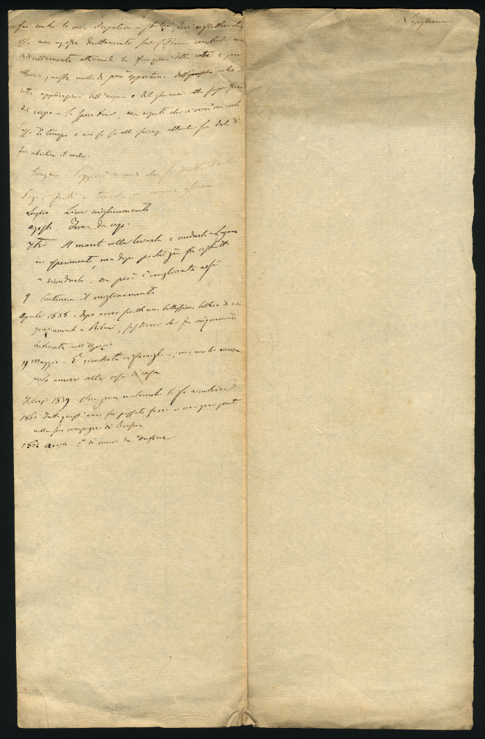 80) Pallavicino [Trivulzio] Giorgio, patriota, gran collare dell'Annunciata, prodittatore a Napoli: domande rivolte al dottor Verga in merito alla cura indicata dal prof. Verdona, con relative risposte scritte in settembre da Cannobio, appunti sullo stato di salute del malato. Melancolia senile.