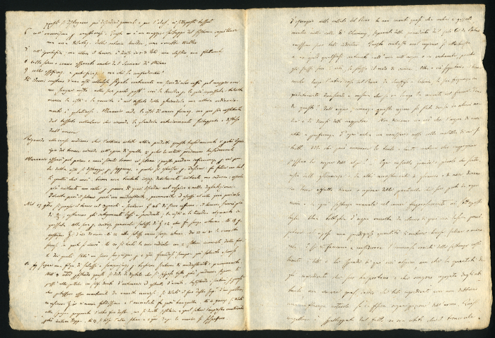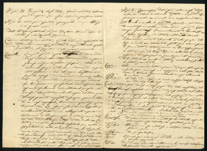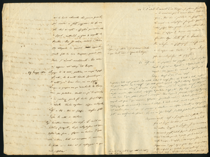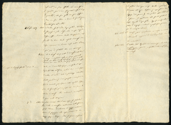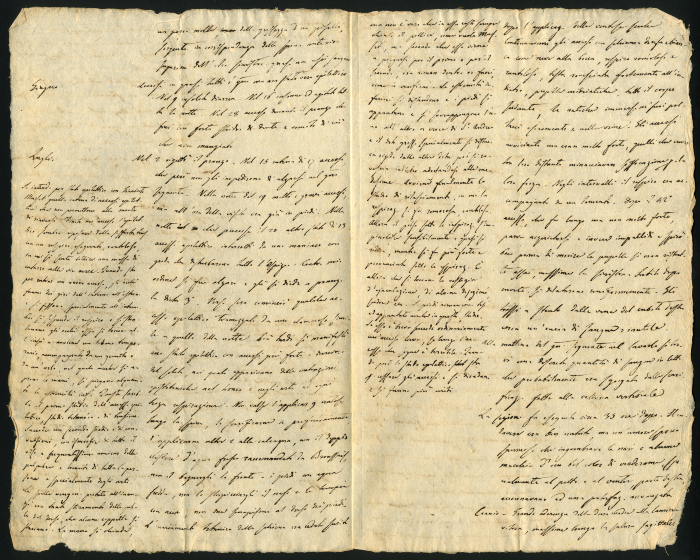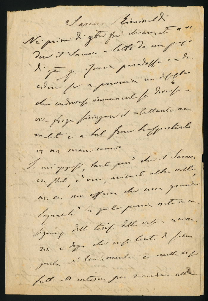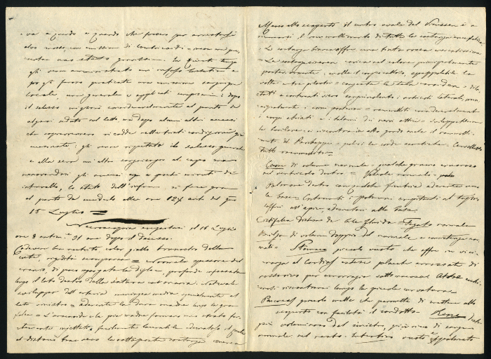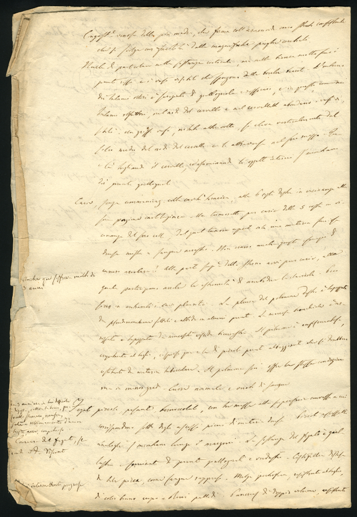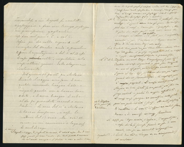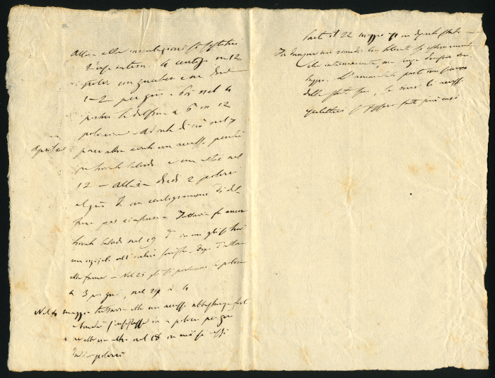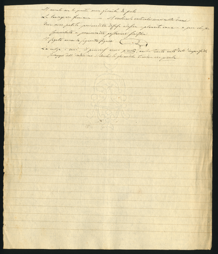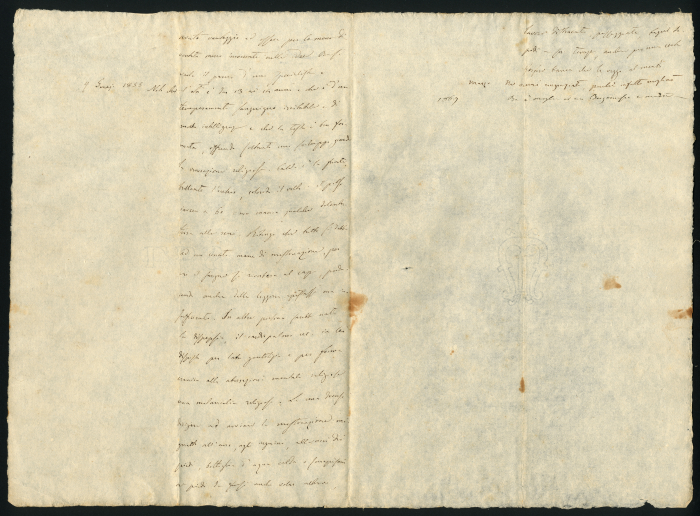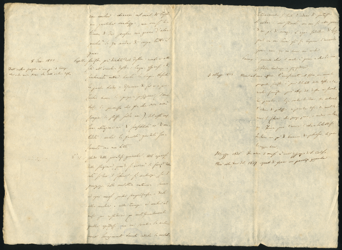 80) Pallavicino [Trivulzio] Giorgio, patriota, gran collare dell'Annunciata, prodittatore a Napoli: domande rivolte al dottor Verga in merito alla cura indicata dal prof. Verdona, con relative risposte scritte in settembre da Cannobio, appunti sullo stato di salute del malato. Melancolia senile.