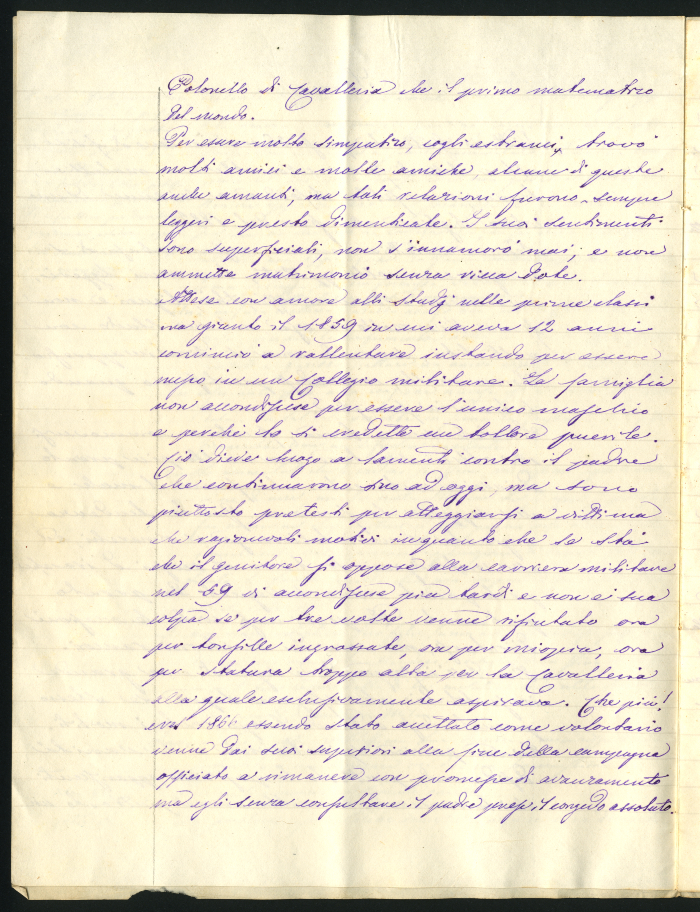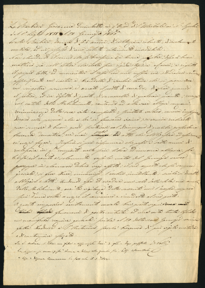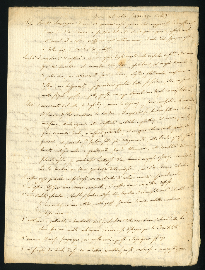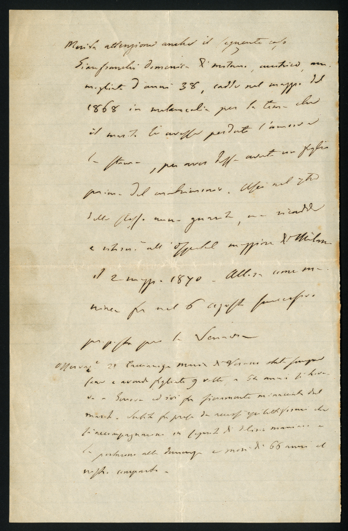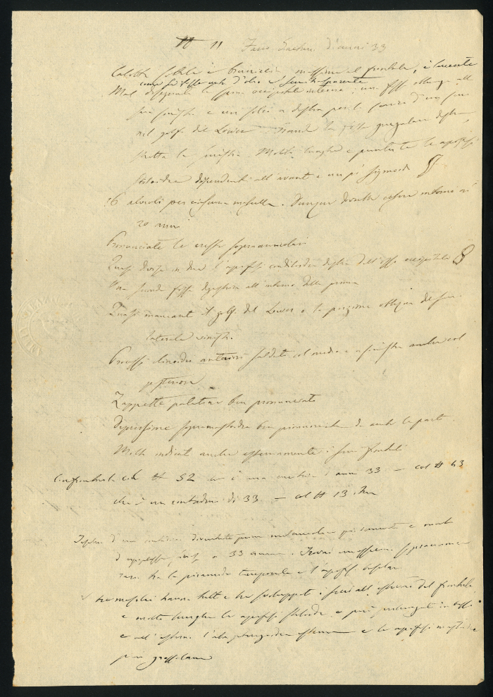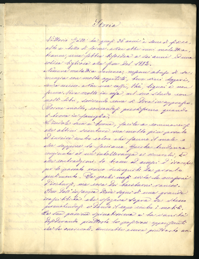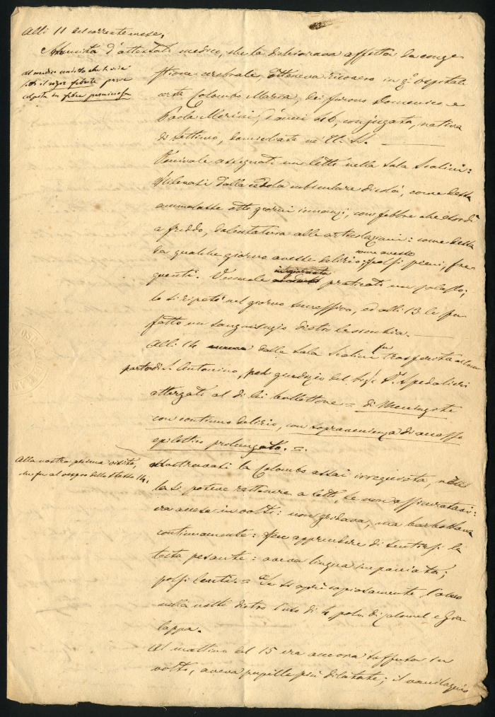 7) Baglioni don Andrea di Bergamo città alta, 54 anni, coniugato, distinto suonatore di violoncello, nel 1838 guardia nobile: anamnesi. Demenza con paralisi generale.