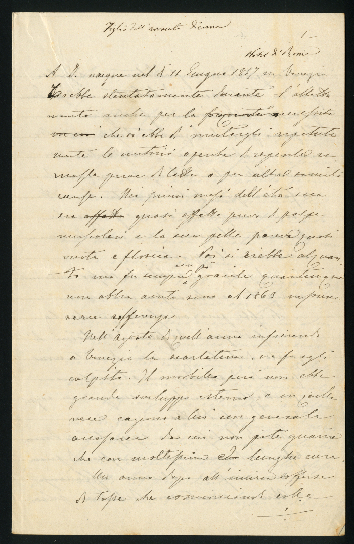 1) A.D. [Adriano Diena], figlio dell'avvocato [Marco], "höhe" di Roma: anamnesi.