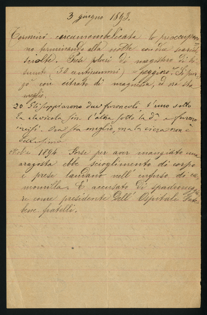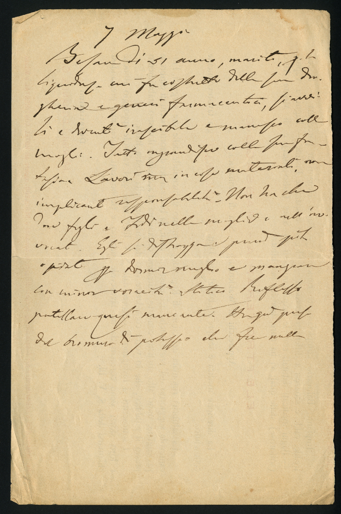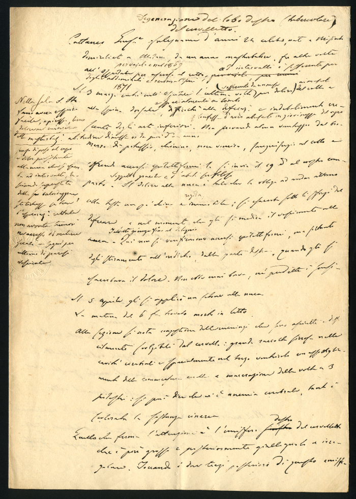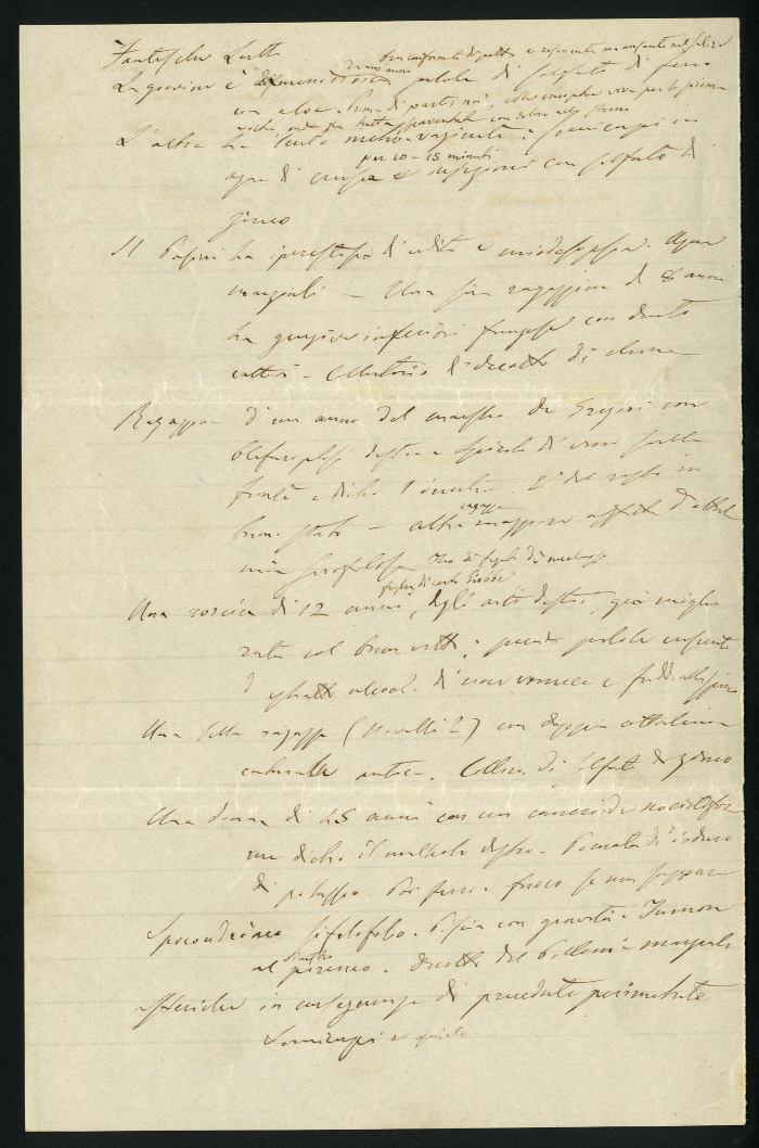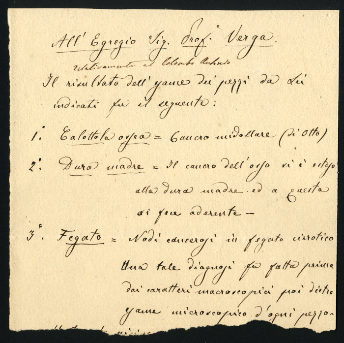 Si conservano gli appunti di 107 casi clinici, non datati, seguiti privatamente da Andrea Verga: