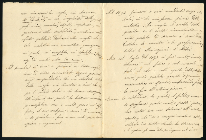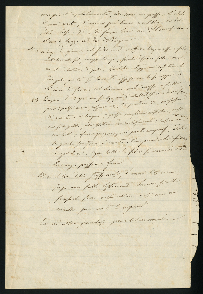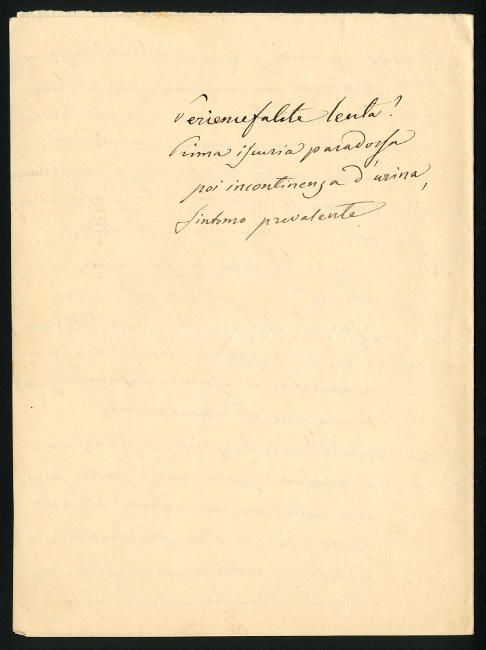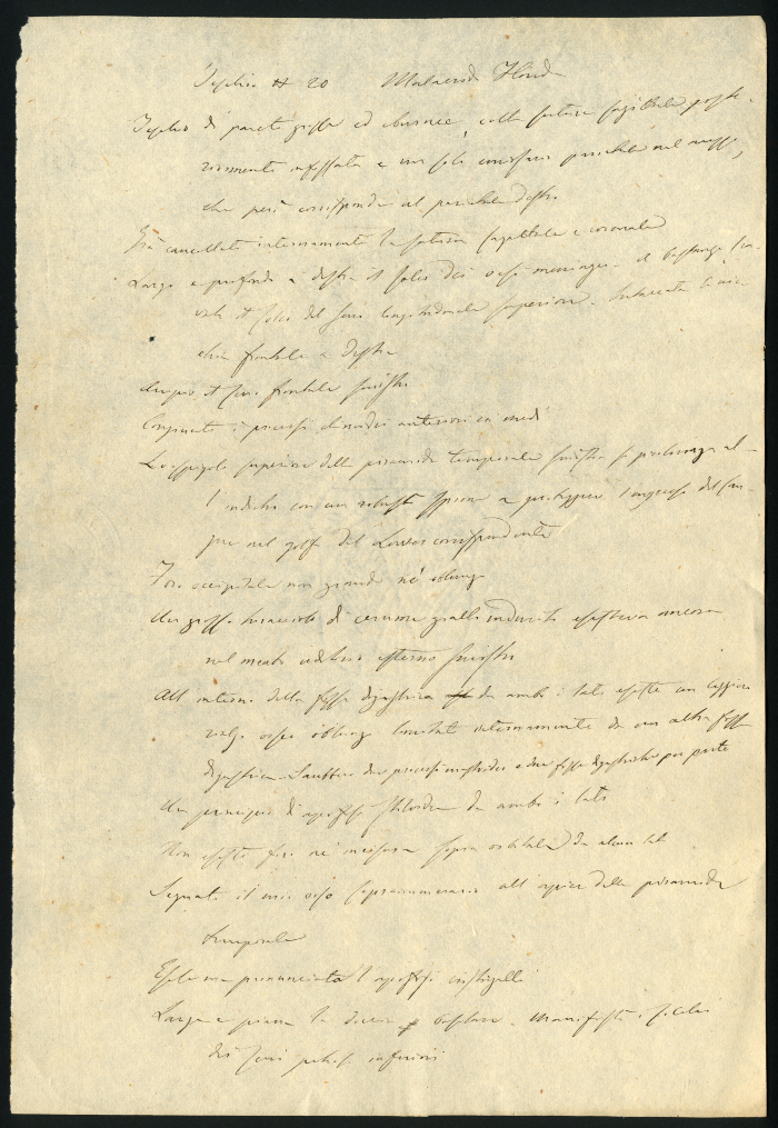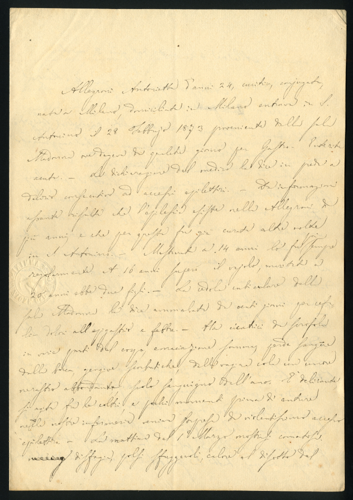 Si conservano gli appunti di 107 casi clinici, non datati, seguiti privatamente da Andrea Verga: