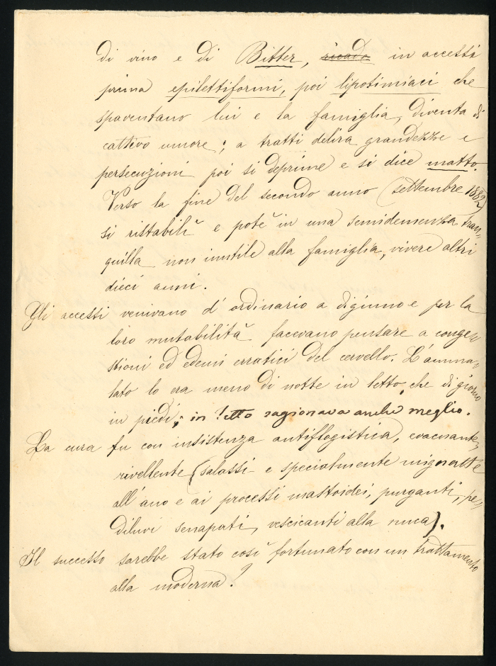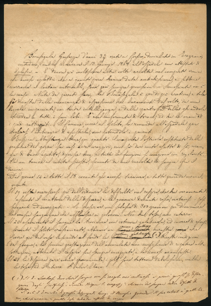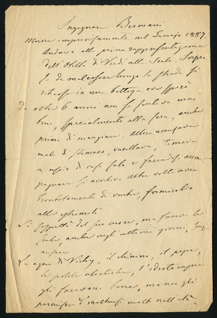 13) Bermani [Cesare], ingegnere capo del servizio centrale dei lavori delle ferrovie della rete mediterranea e presidente del Collegio degli ingegneri e architetti di Milano: osservazioni sulla morte verificatasi nel gennaio 1887 e appunti di storia clinica, s.d.