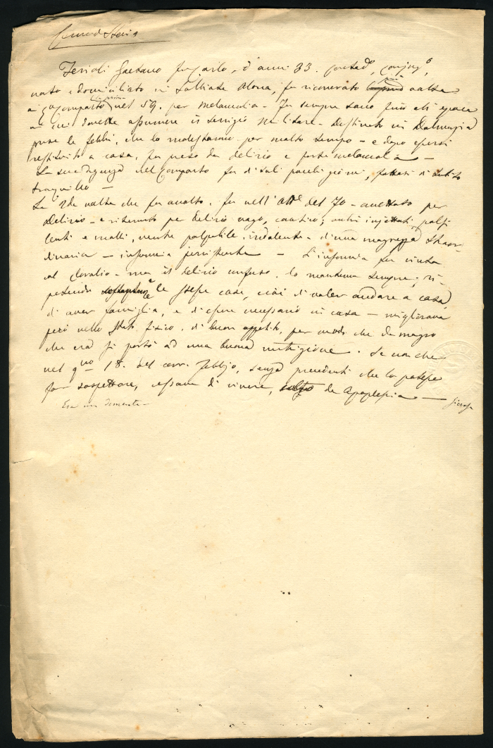 79) Cons. Paleari di Cremona, 75 anni: anamnesi e osservazioni sulla causa della malattia. Melancolia.