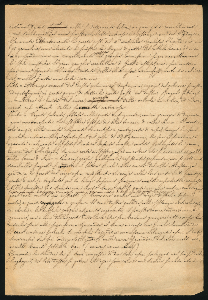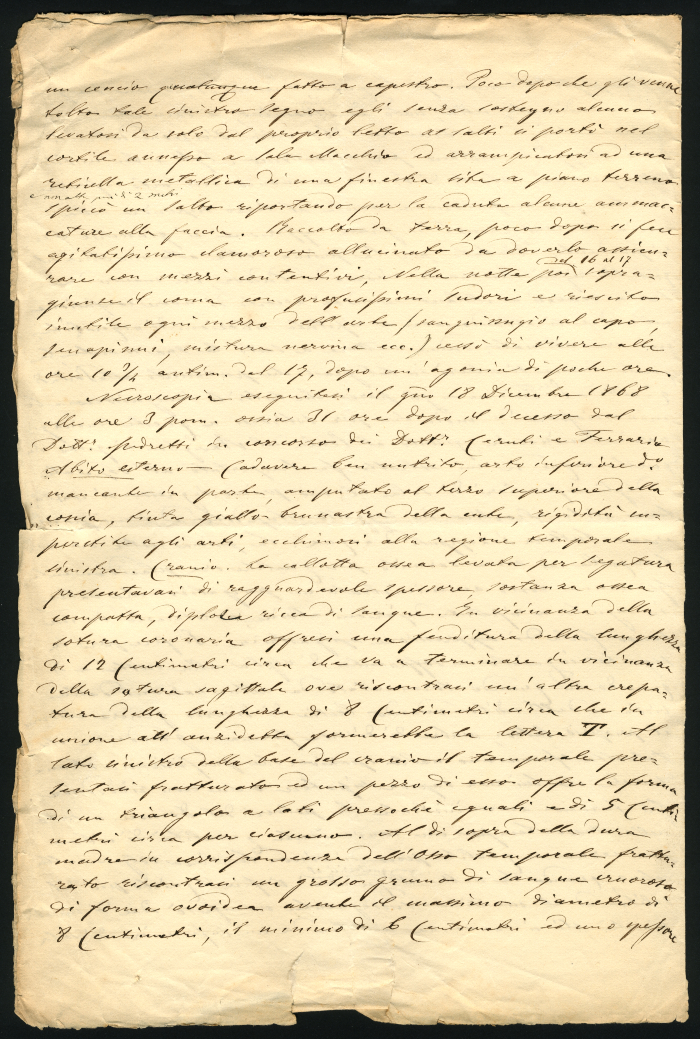 88) Ronchi Gaetano fu Gaetano, nato a Cusago, domiciliato a Cesano Boscone, 69 anni, contadino, vedovo: anamnesi, necroscopia ed esame del cranio.