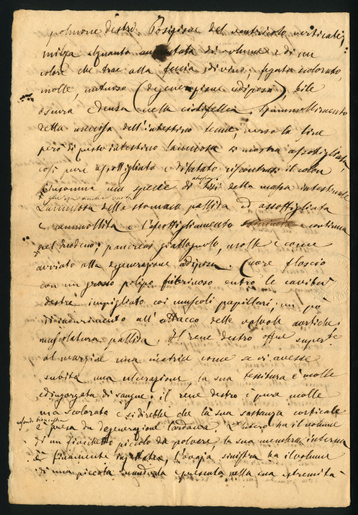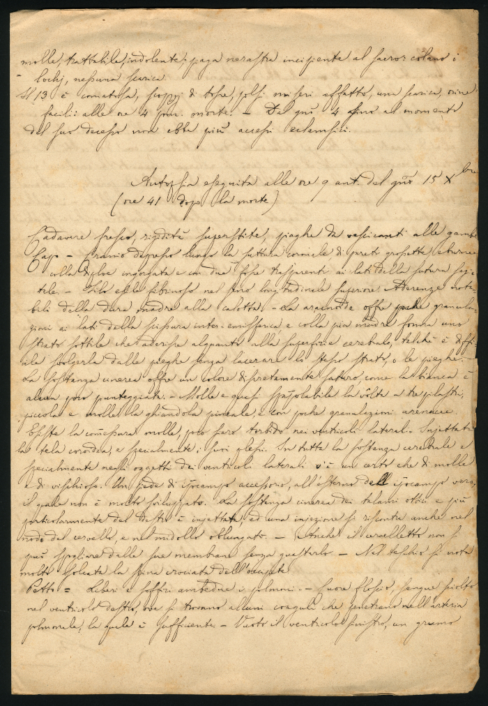 2) Abbiati o Abiati Luigi fu Carlo, nato a Senago, 72 anni, contadino, coniugato: anamnesi e necroscopia.