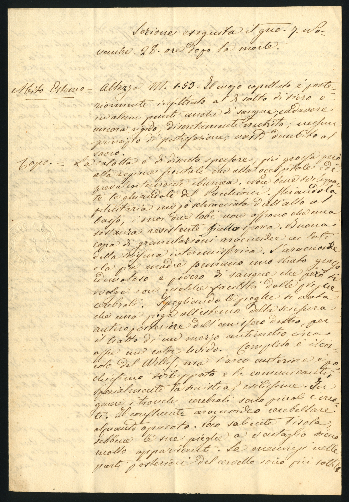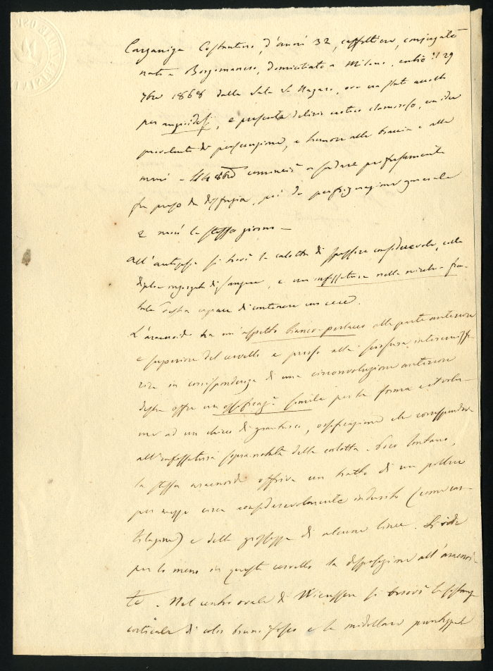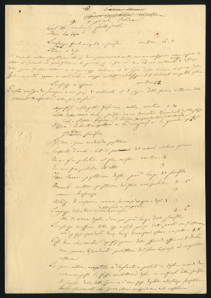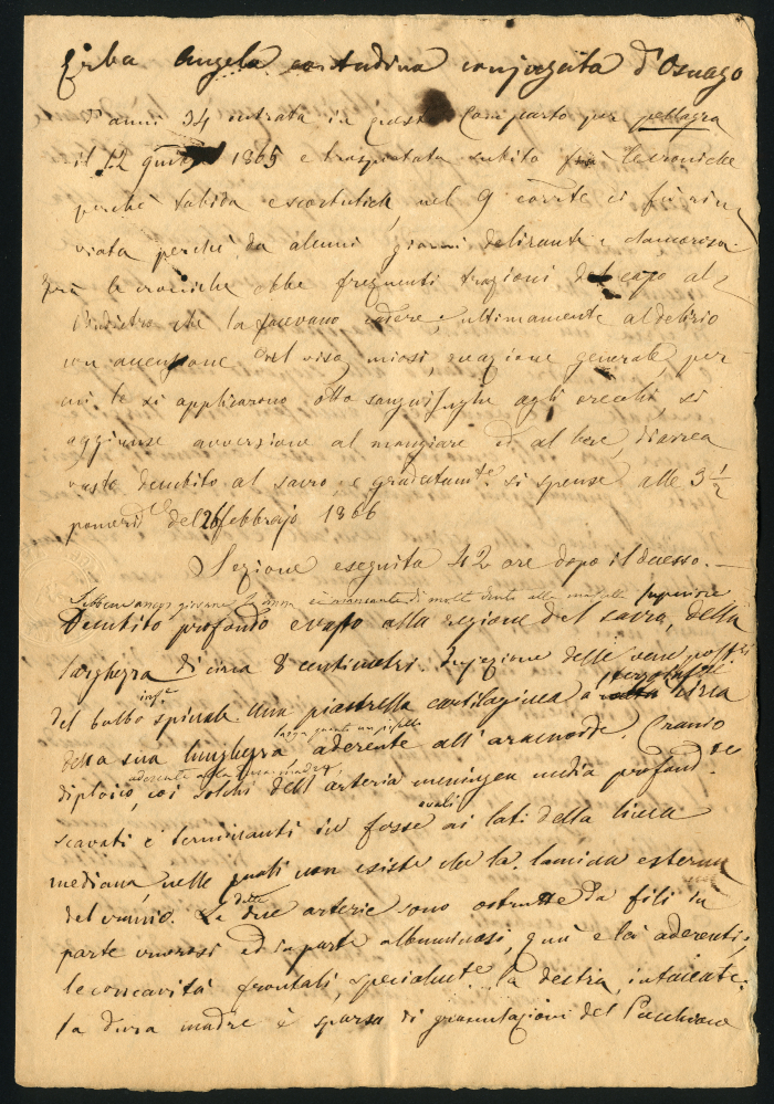Crivelli, nata a Torre Pallavicini, domiciliata nei Corpi Santi [Milano], 45 anni, levatrice: anamnesi, sezione ed esame del cranio.