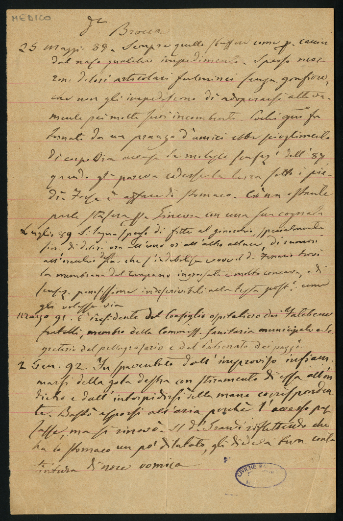 20) Brocca [Giovanni], [medico]: appunti di storia clinica, presidente dell'Ospedale Fatebenefratelli.
