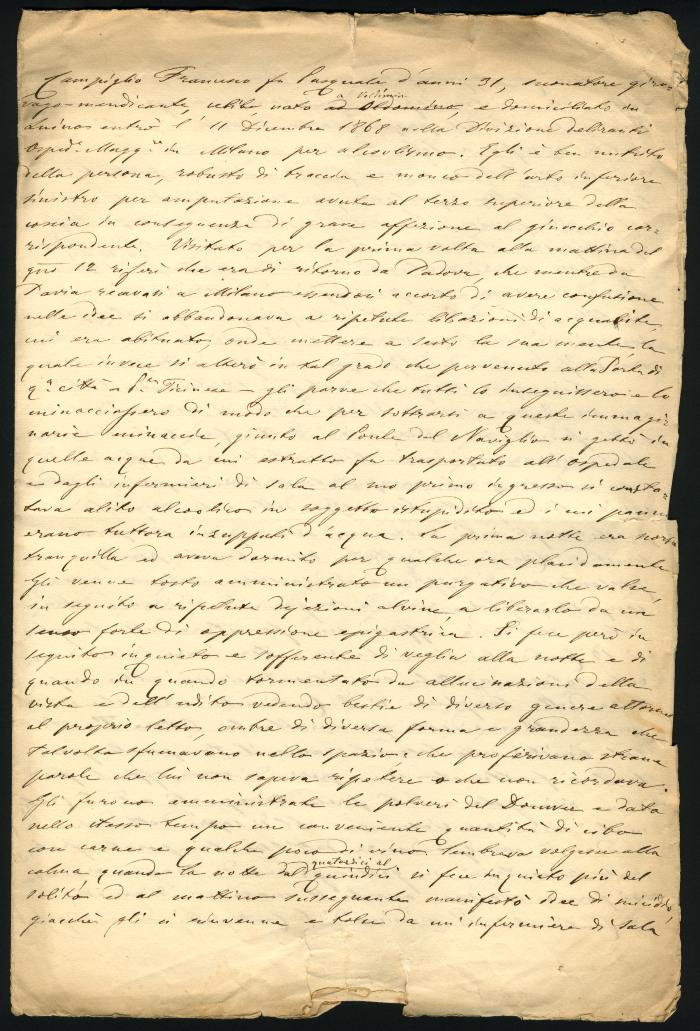 24) Campiglio Francesco fu Pasquale, nato a Voldomino, domiciliato a Luino, 31 anni, suonatore girovago mendicante: anamnesi, necroscopia ed esame del cranio.
