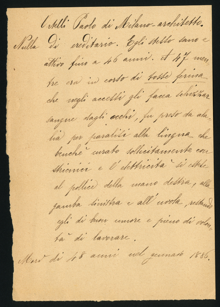 77) Orselli Paolo di Milano, architetto: appunti di storia clinica.