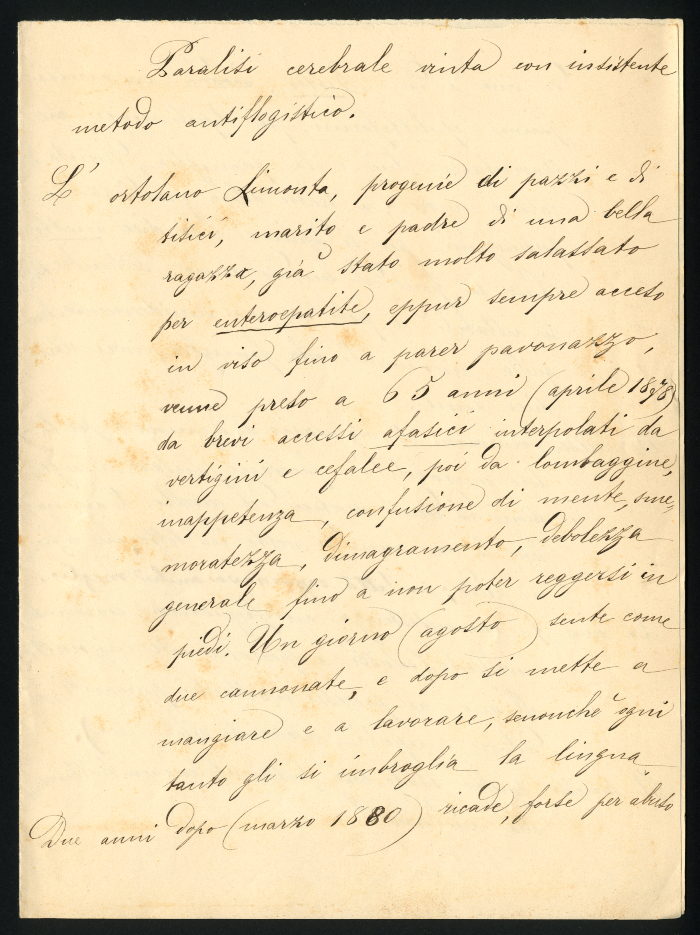 49) Filippi Filippo, 56 anni, coniugato, scrittore di appendici teatrali per "La Perseveranza": appunti di storia clinica. Apoplessia.