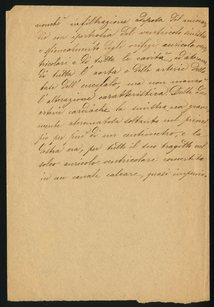 63) Loria: cenni clinici e necroscopici in calce alla descrizione dell'ateroma delle arterie cardiache o coronarie del cuore. Titolo sulla camicia “Ateroma delle arterie cardiache”.