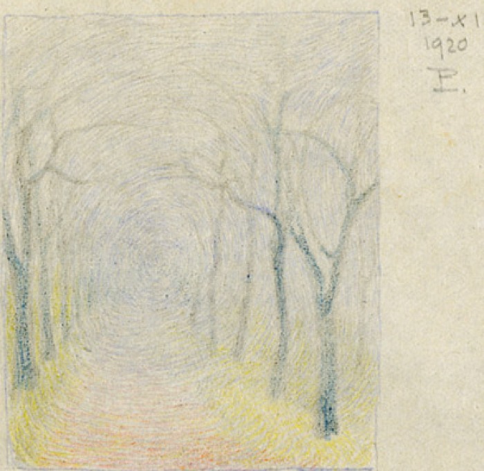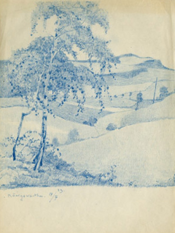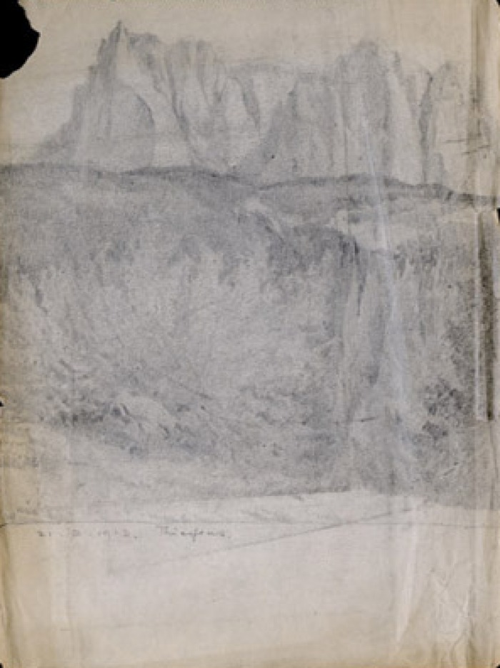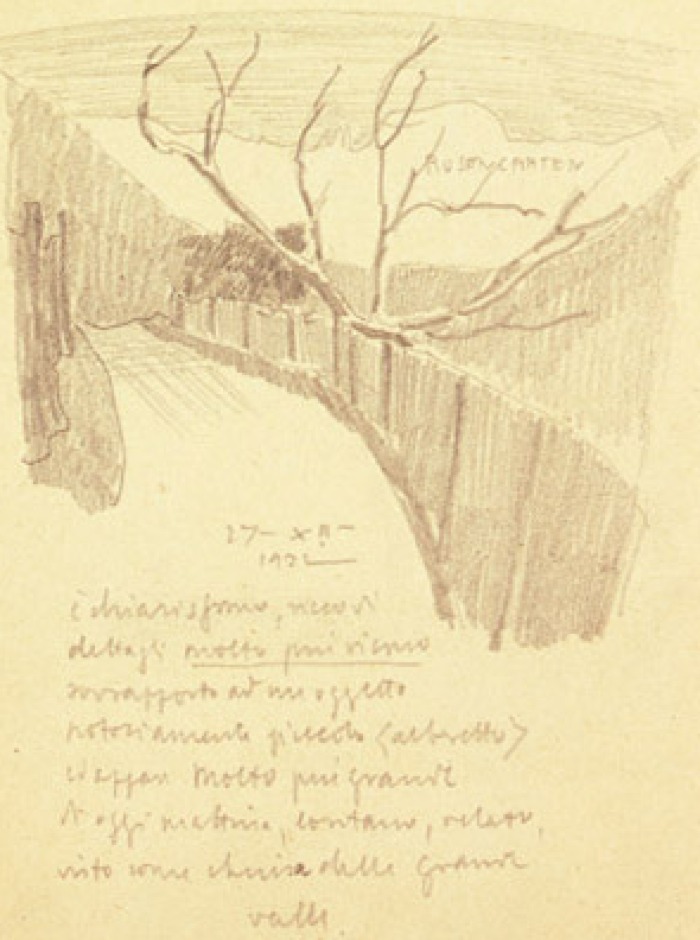 Paesaggio, 17 dicembre 1921; sullo sfondo la sagoma del Catinaccio (Rosengarten) innevato