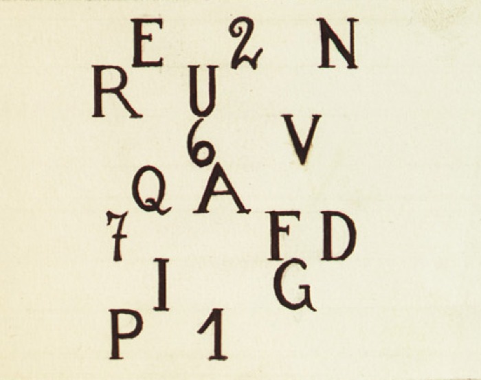 Se (2) sul cartellino erano scritte lettere e cifre, il soggetto doveva nominare o solo lettere o solo cifre; se erano segnate solo lettere (cifre), egli doveva indicare solo cifre (lettere).
