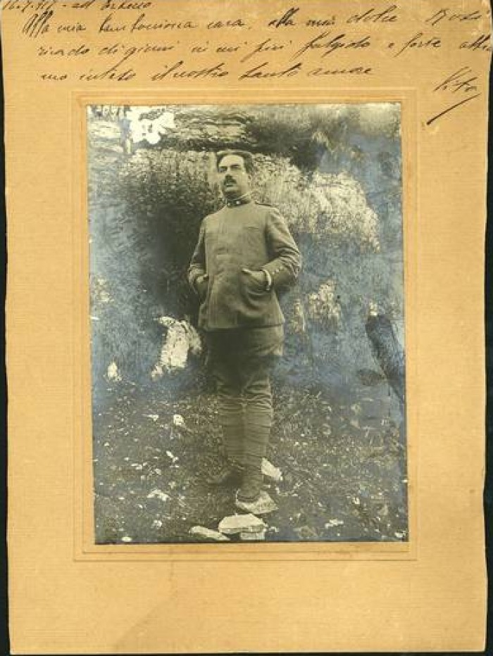 Foto di Vito Massarotti, ufficiale medico sul fronte veronese delle Grande guerra, con dedica alla fidanzata Rosa