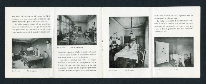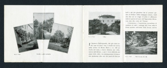 Opuscolo conservato nell'archivio dello psichiatra e psicologo Vito Massarotti relativo al Sanatorio Bellosguardo di Roma, di cui lo stesso Massarotti fu direttore scientifico dal 1907 al 1915.