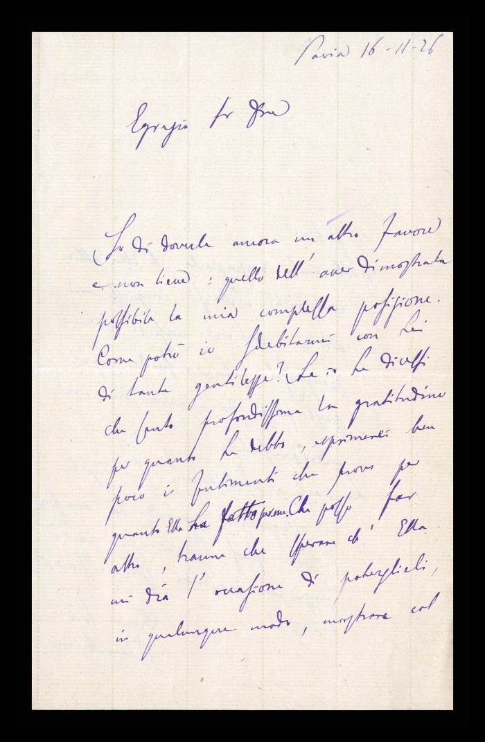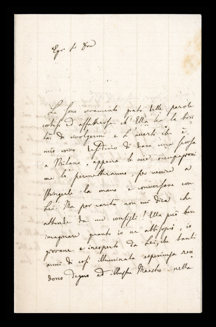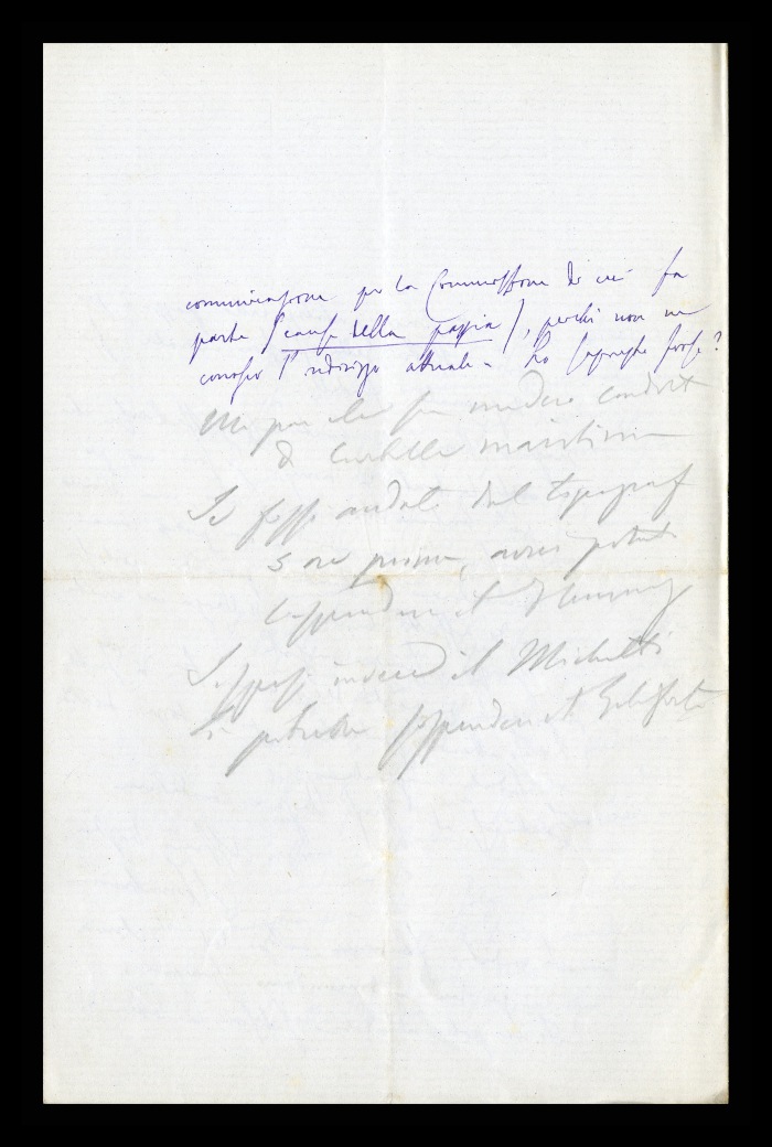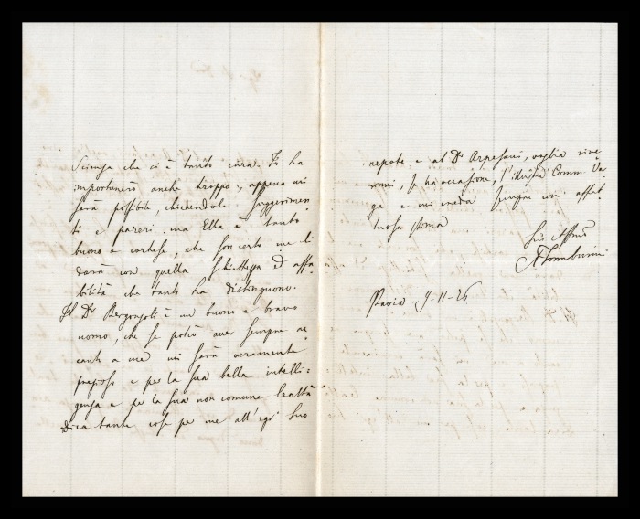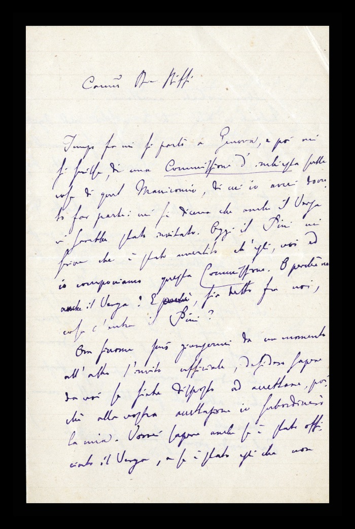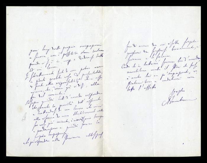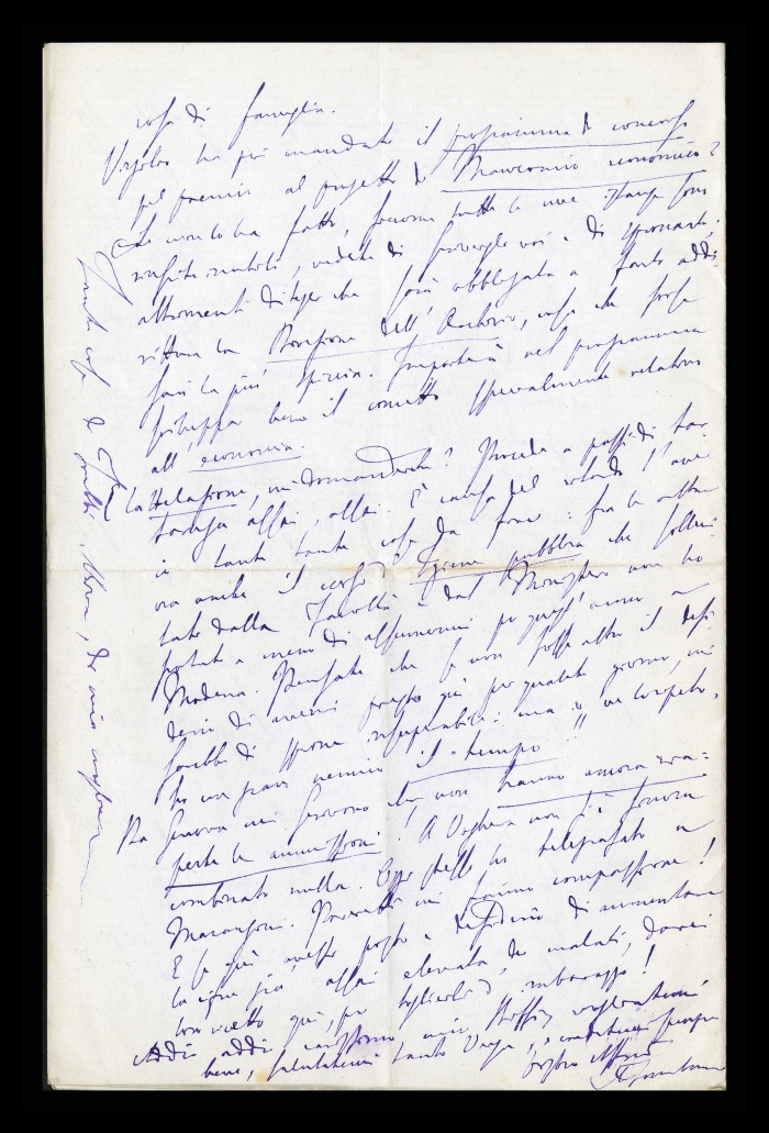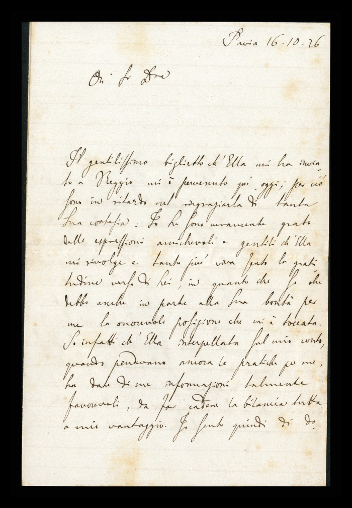 2) Pavia, 16.10.1876: Augusto Tamburini ringrazia Biffi per averlo sostenuto [nella designazione a professore incaricato di medicina e chirurgia presso l'Università di Pavia], invitandolo ad esprimere i sensi della sua gratitudine anche ad [Andrea] Verga. Lo informa di essere a Pavia da pochi giorni, in procinto di partire per poi ritornare all'inizio dell'anno scolastico. Ora che si trovano così vicini, si augura di poter incontrare spesso Biffi e Verga. Invia saluti ad [Angelo] De Vincenti.