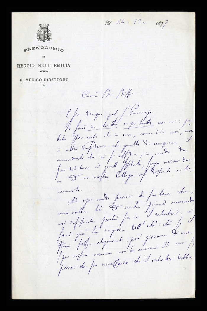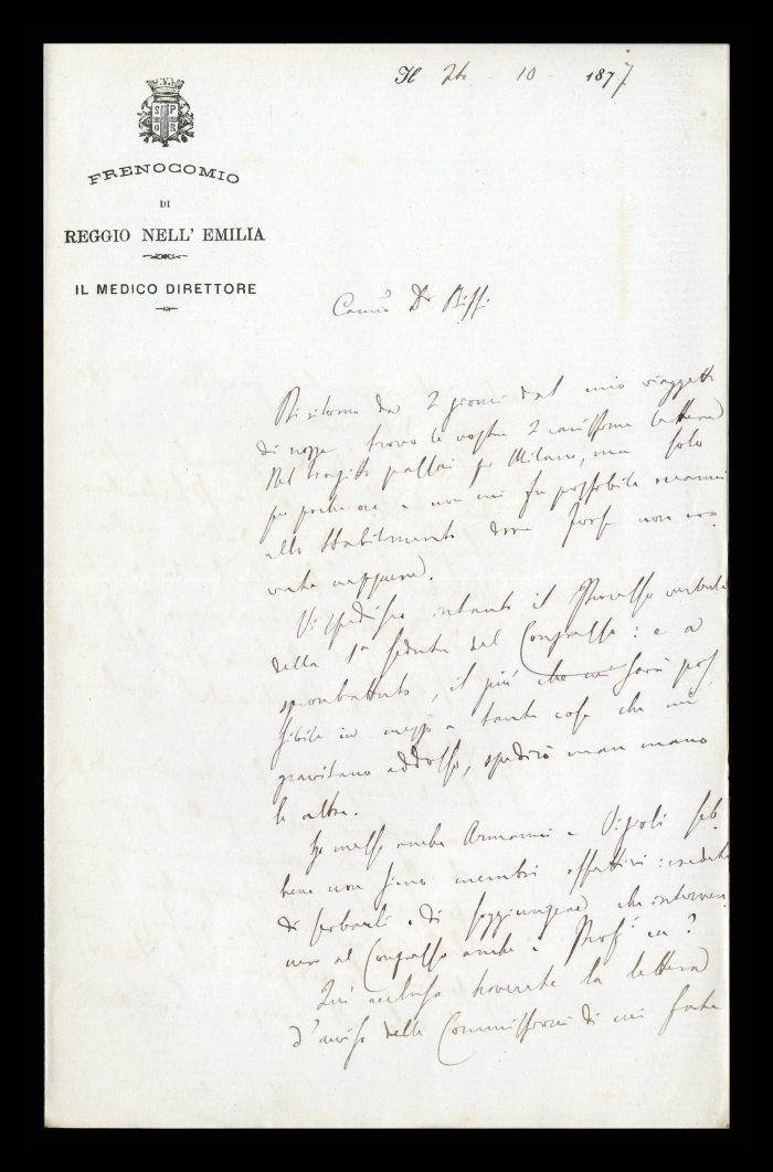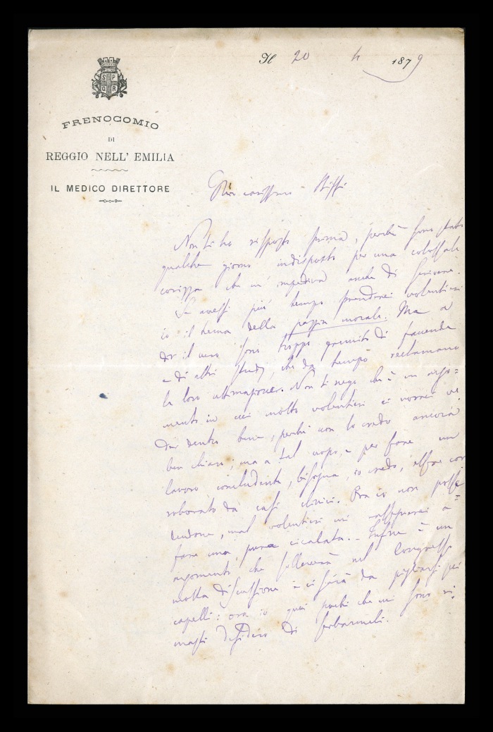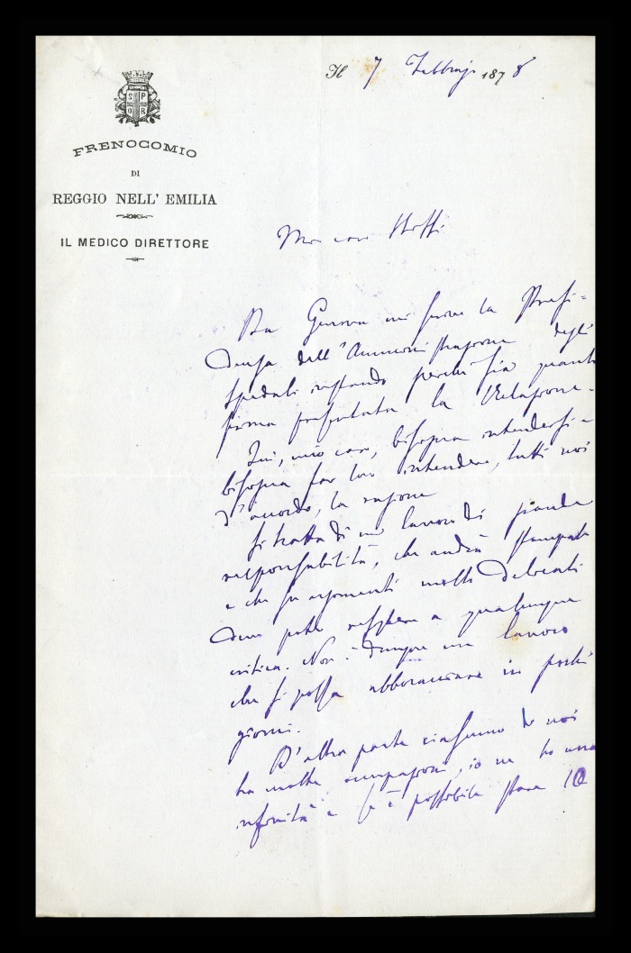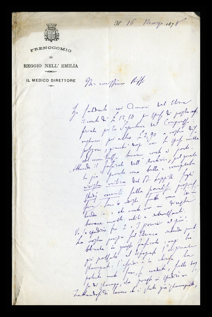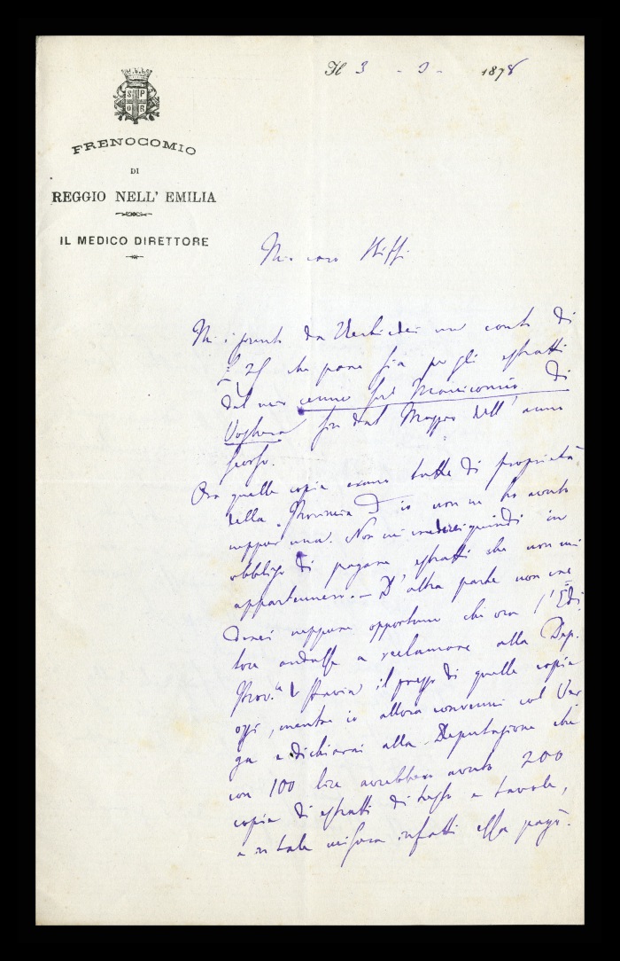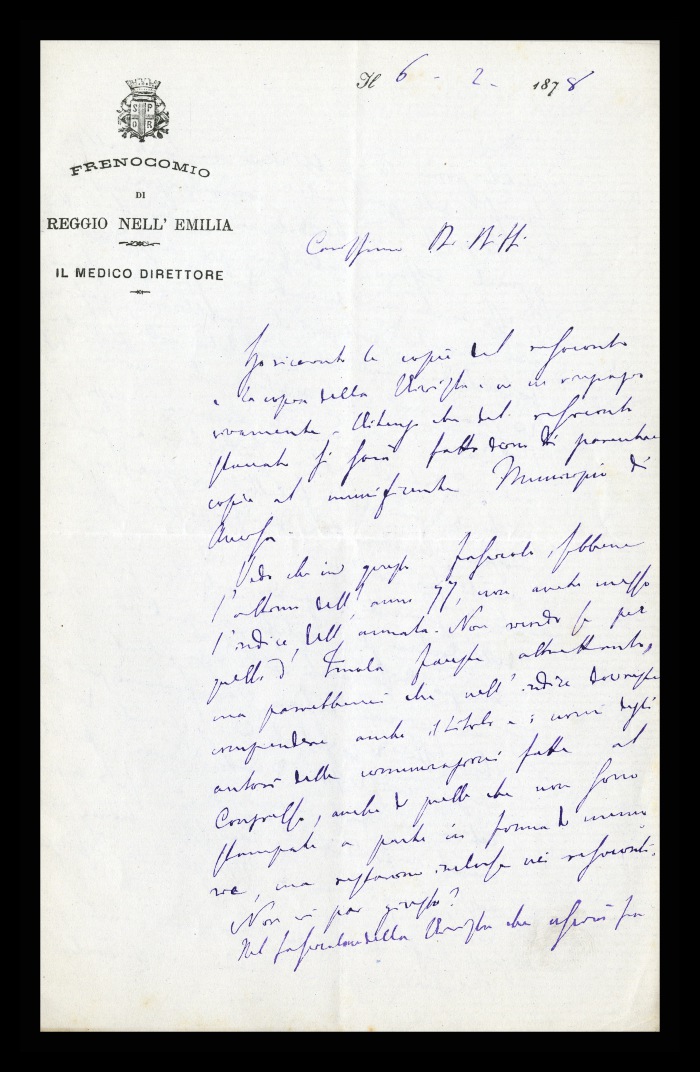 Carta intestata: FRENOCOMIO DI REGGIO-EMILIA / IL MEDICO DIRETTORE