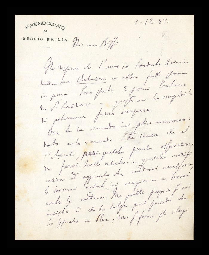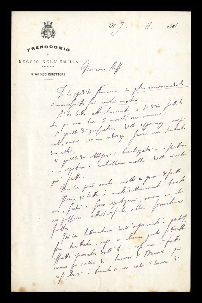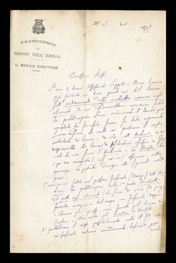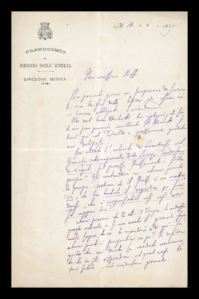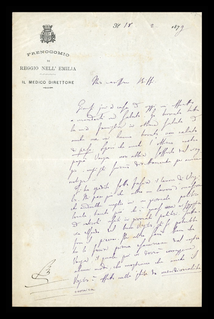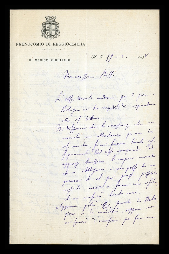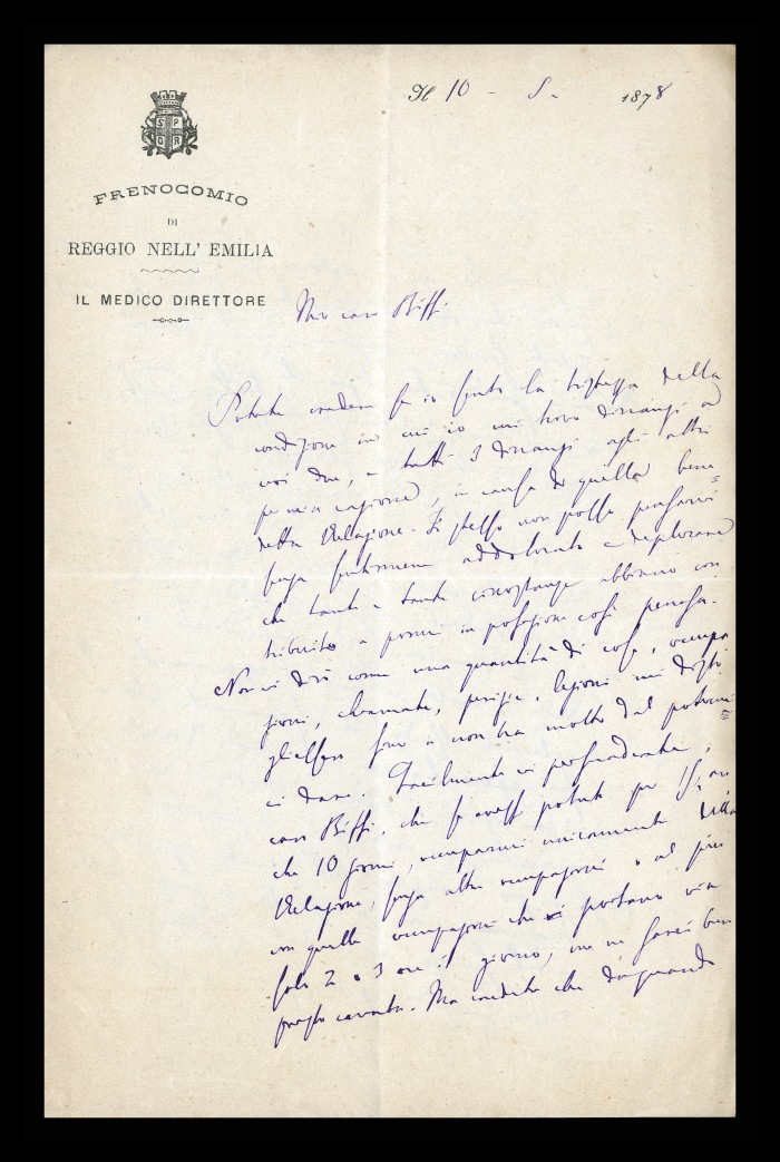Carta intestata: FRENOCOMIO DI REGGIO-EMILIA / IL MEDICO DIRETTORE