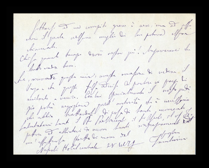 26) Napoli, 28.01.1879: Augusto Tamburini scrive a Biffi da Napoli, dove si è dovuto recare con urgenza per valutare lo stato di mente di [Giovanni] Passannante, autore di un attentato fallito a Vittorio Emanuele III. Precisa che, ancora prima di partire da Reggio Emilia, ha segnalato l'opportunità di coinvolgere “autorità psichiatriche”, come [Andrea] Verga e [Antonio] Berti e che, una volta giunto a Napoli ne ha parlato con Tommasi e Buonomo, i quali hanno approvato l'allargamento della Commissione. Invita Biffi a sollecitare Verga ad accettare l'incarico. Invia saluti estesi ad [Angelo] De Vincenti, ad Ascoli e all'ispettore di Biffi.