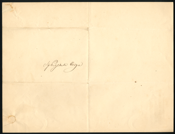 25) Milano, 11 settembre 1858: Informa Verga di essere stato chiamato a Monza per una questione riguardante l'Arciduca. Avverte Verga che l'Arciduca lo chiamerà per sentire il suo parere oltre quello di Menine, Sacchi, Codazza, Cittadella, Selvatico. Aggiunge di aver già chiesto al Municipio i rapporti sulle acque e il cimitero.