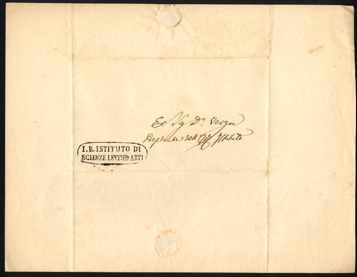23) La lettera non è datata, ma è indirizzata a Verga presidente [dell'Istituto lombardo], pertanto è attribuibile sia al 1858 che agli anni 1864-1865.