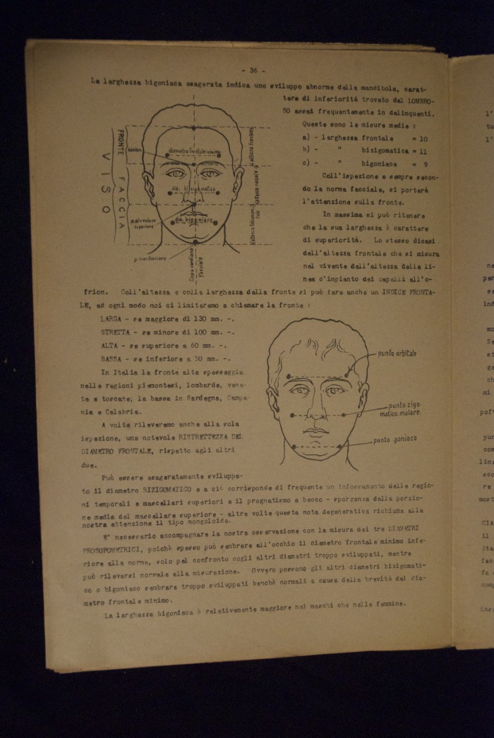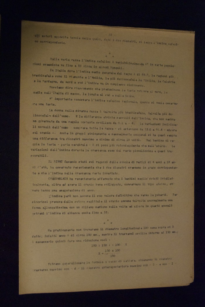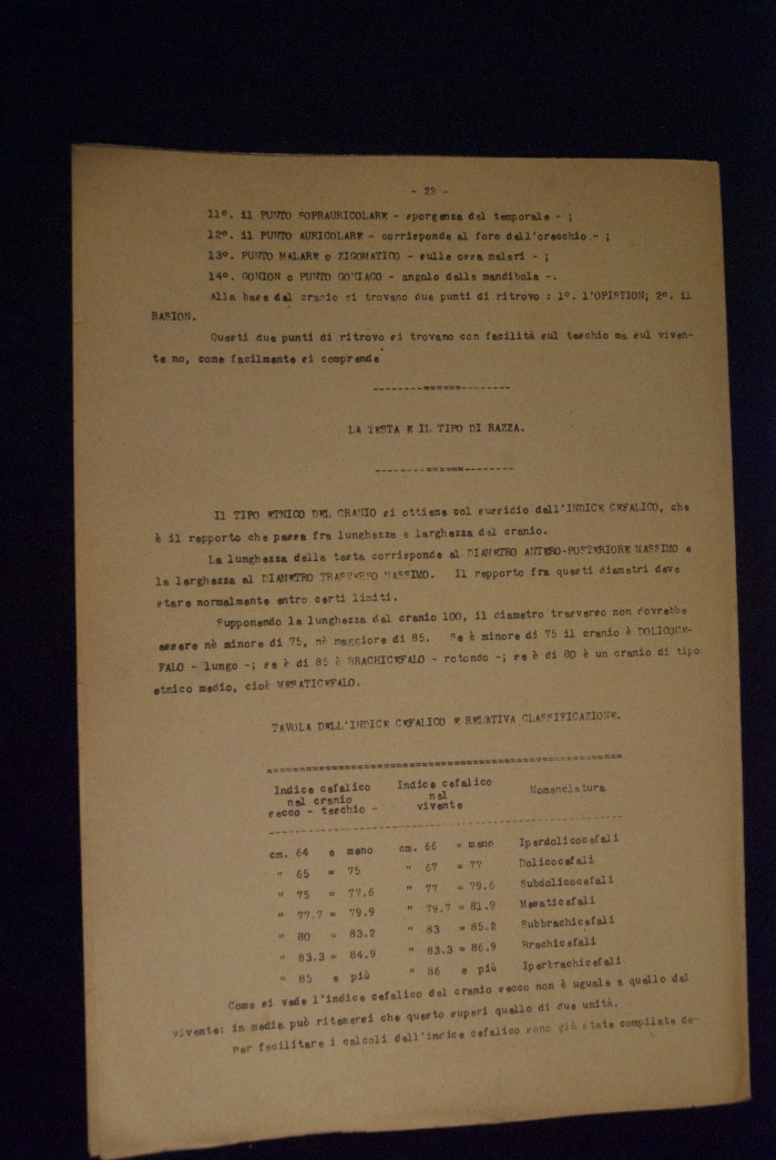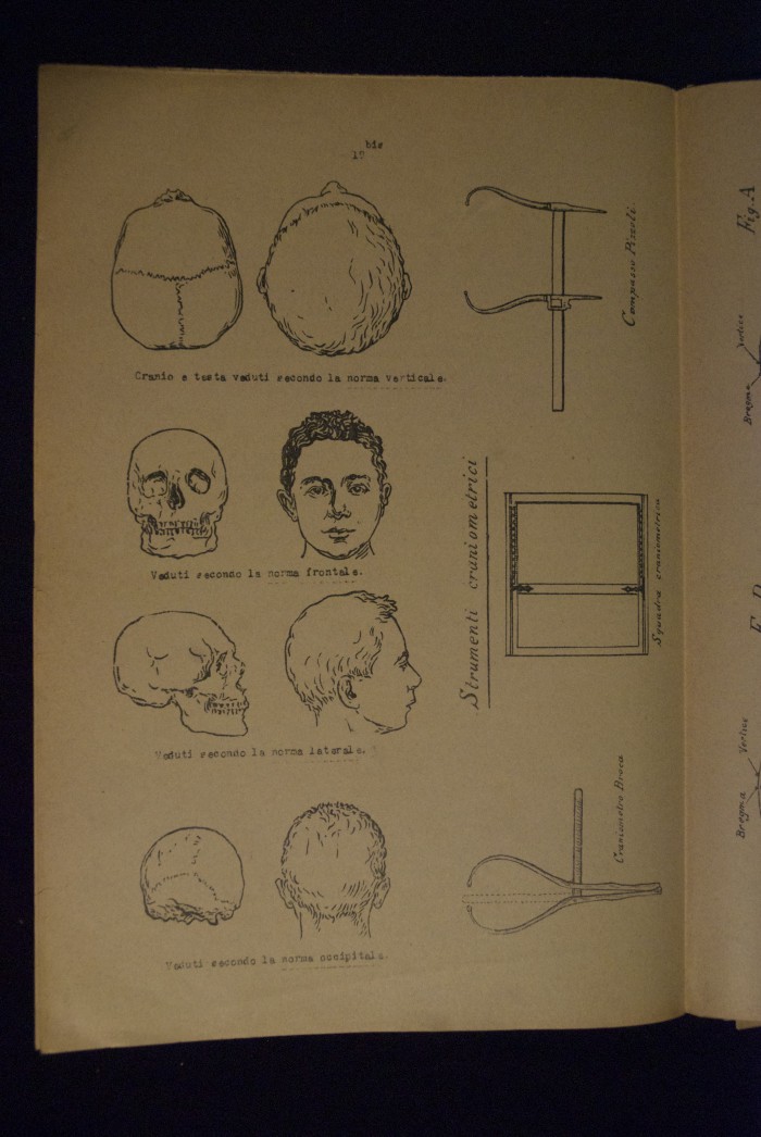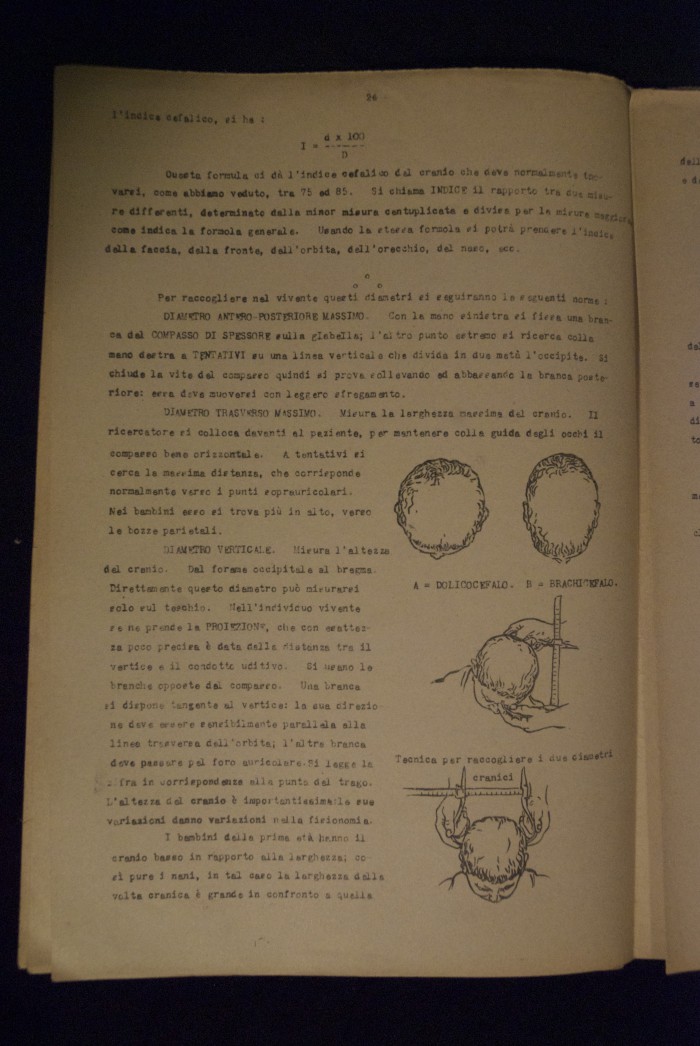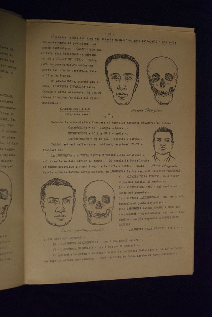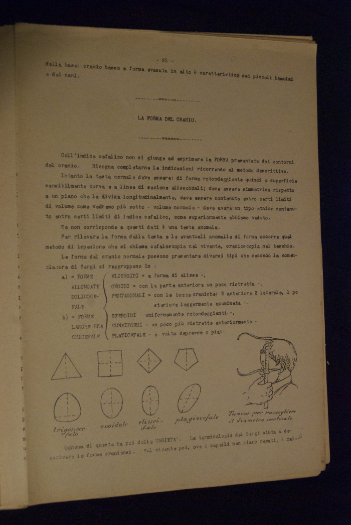 Testo a stampa mutilo di una lezione sull'anatomia del cranio umano. Lo scritto inizia da pagina 9 e si interrompe a pagina 38. L'autore potrebbe essere Pizzoli.