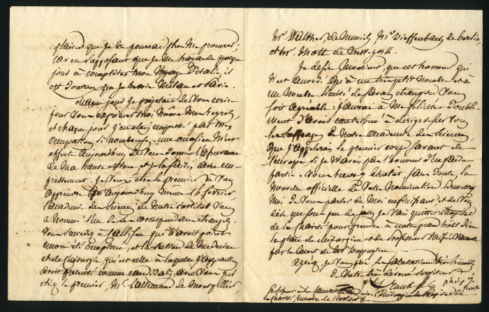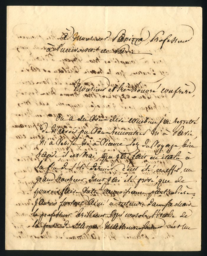 1) [s.l.], [1835]: si dice dispiaciuto di non averlo incontrato né a Pavia, né a Venezia, né a Vicenza durante il breve viaggio in Italia effettuato alla fine dell'estate. Vuole essere il primo a comunicargli che il 16 febbraio l'Accademia delle scienze lo ha nominato membro corrispondente straniero al posto di Callisou. Rivela che la Sezione di medicina e chirurgia aveva presentato anche altri candidati: Callemand di Montpellier, Walther di Monaco, Dieffenbach di Berlino e Mott di New York. Gli comunica infine che è in procinto di lasciare l'ospedale della Charité per prendere il posto di professore di chirurgia all'Hotel Dieu di Parigi, rimasto vacante per la morte di Dupuytren.