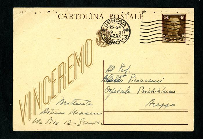2) Genova, 18 ottobre 1942: gli chiede di riferire a Carlo che avrebbe piacere di incontrarlo a Milano in occasione della sua prossima licenza. Invia ossequi.
