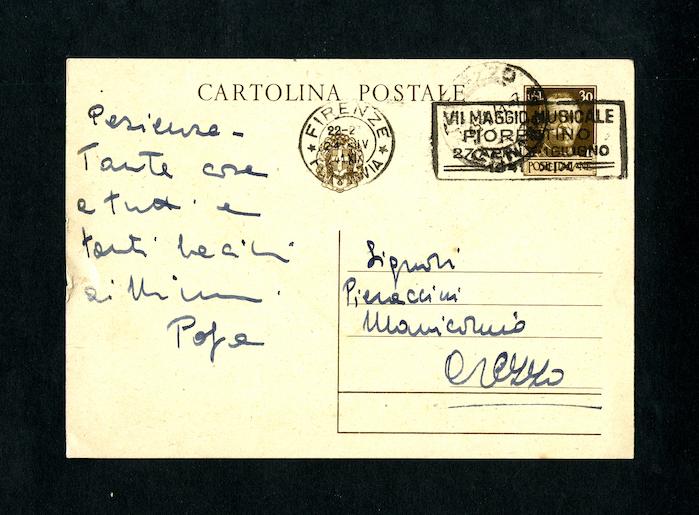 Una lettera e una cartolina di Vittoria (Popa) Naldini al nonno materno, Arnaldo Pieraccini: