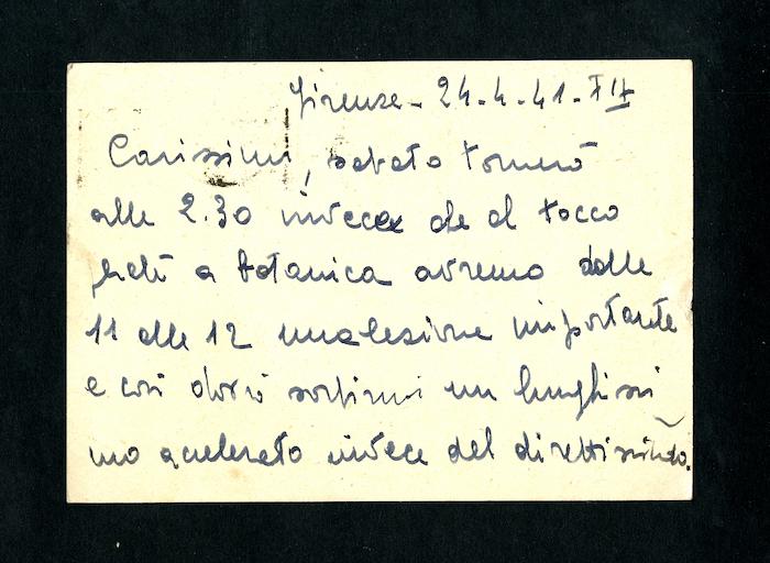 2) Firenze, 24 aprile 1941: informa che sabato arriverà più tardi del previsto perché deve assistere ad una importantissima lezione di botanica.
