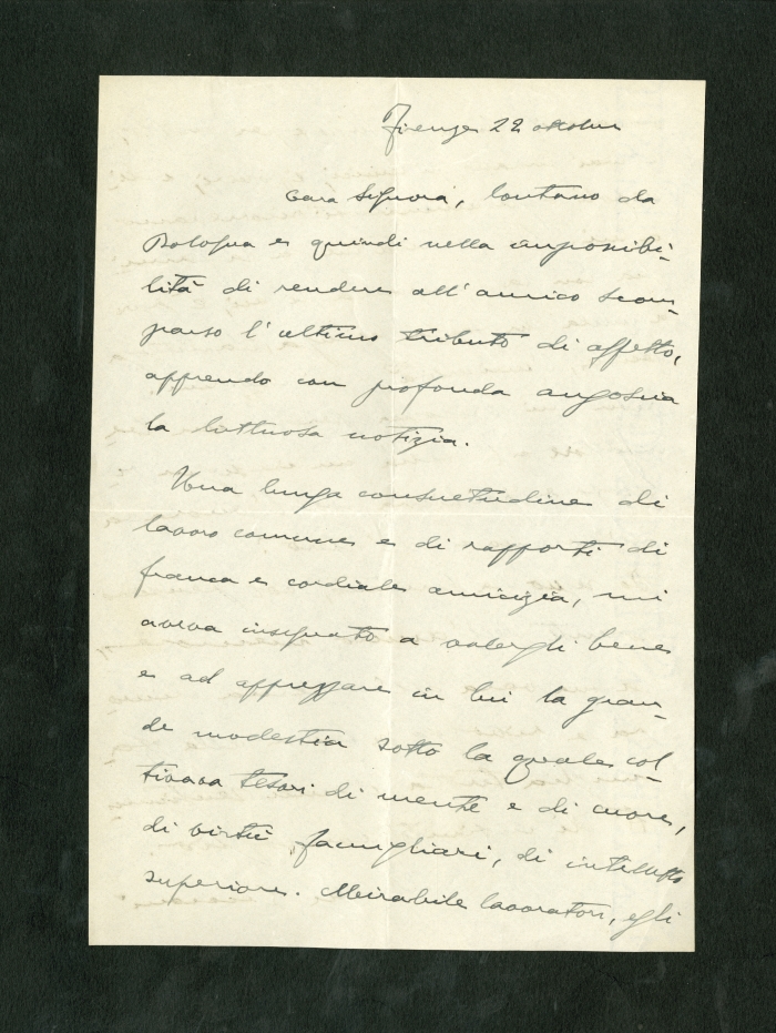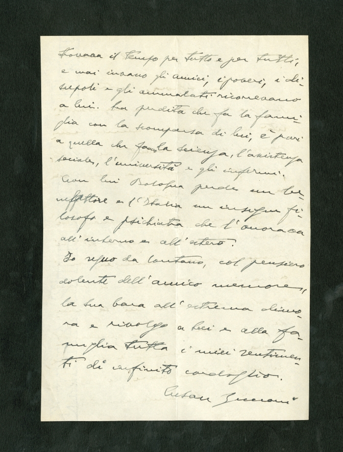Una lettera di condoglianze e di ricordo del giurista Cesare Zucconi a Emilia Giordani Ferrari:
