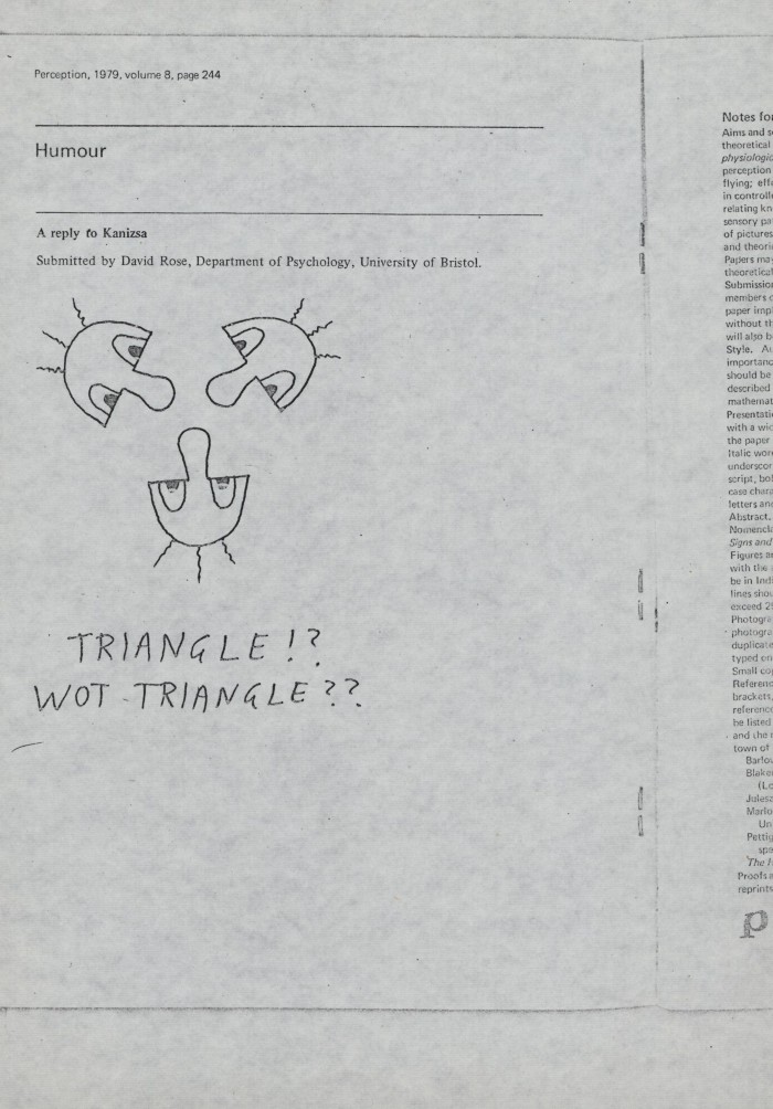 2) due figure in cui David Rose replica il triangolo di Kanizsa. L'articolo di Rose è stato pubblicato dalla rivista "Perception" vol. 8, 1979.