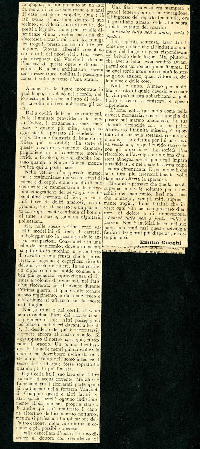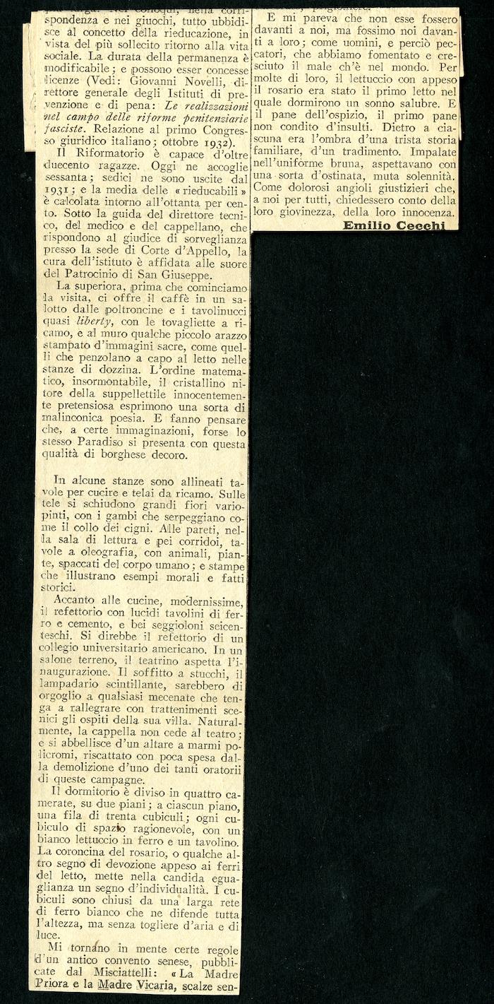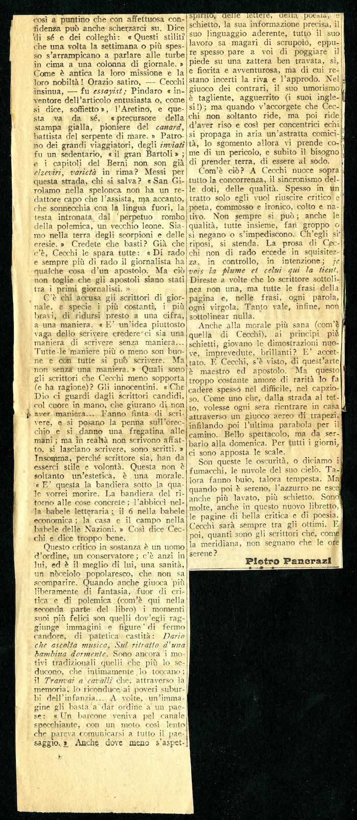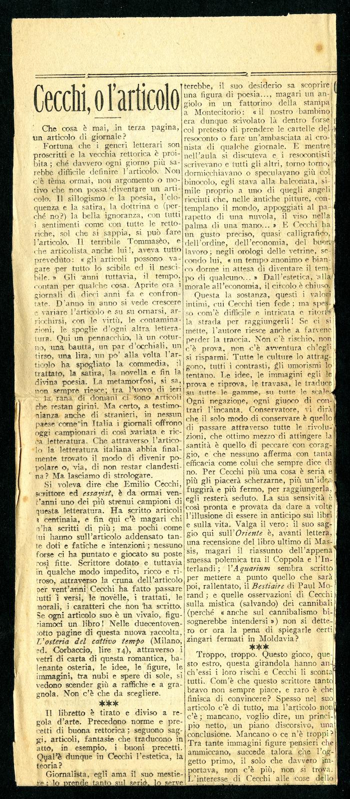 E' inoltre presente uno stralcio dal "Corriere della sera" (12 luglio 1927) con un pezzo di Pietro Pancrazi intitolato Cecchi, o l'articolo, pubblicato in occasione dell'uscita del libro di Emilio Cecchi, L'osteria del cattivo tempo, Milano 1927.