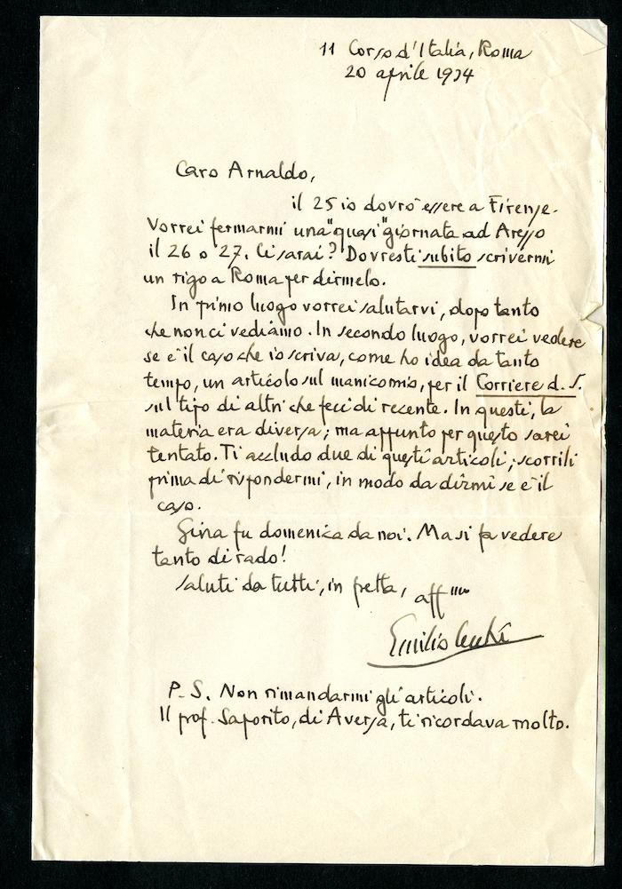 Cinque lettere del critico letterario Emilio Cecchi (1884-1966) a Pieraccini: