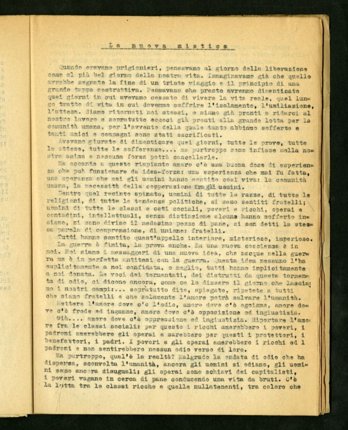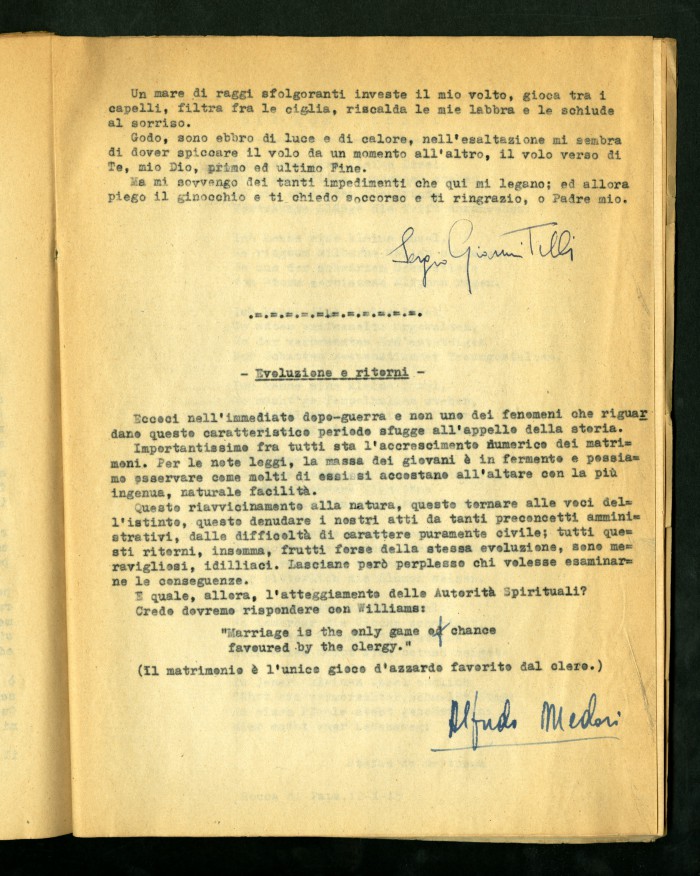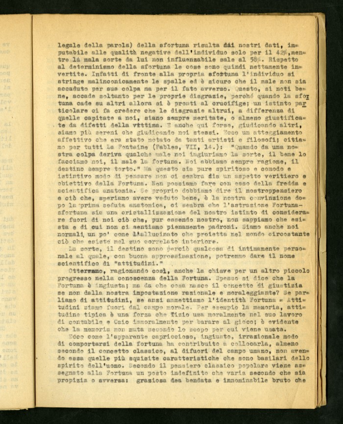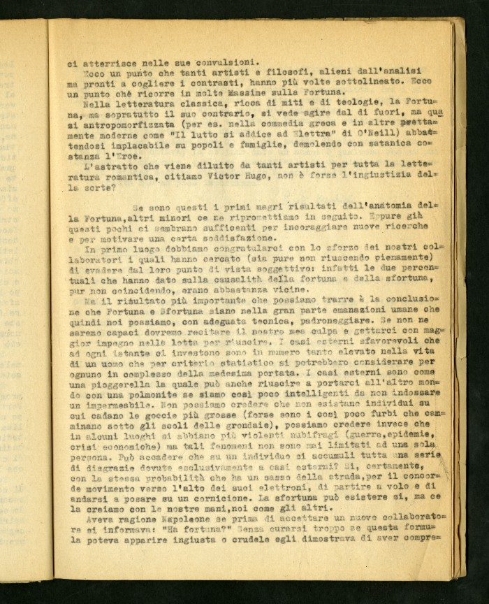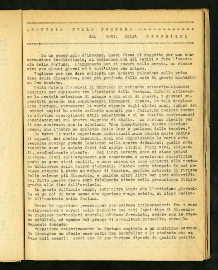 2) Articolo dattiloscritto di Luigi Meschieri dal titolo "Anatomia della fortuna" in "Risalire": rivista della Maison d'Accueil di Rocca di Papa, primo numero, febbraio 1946.