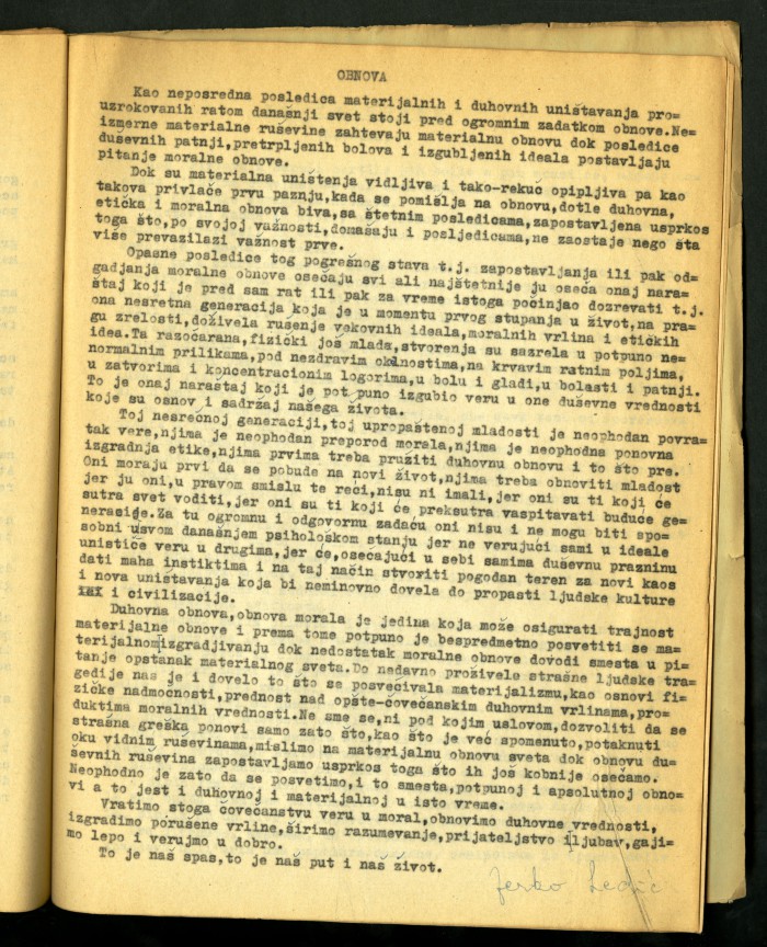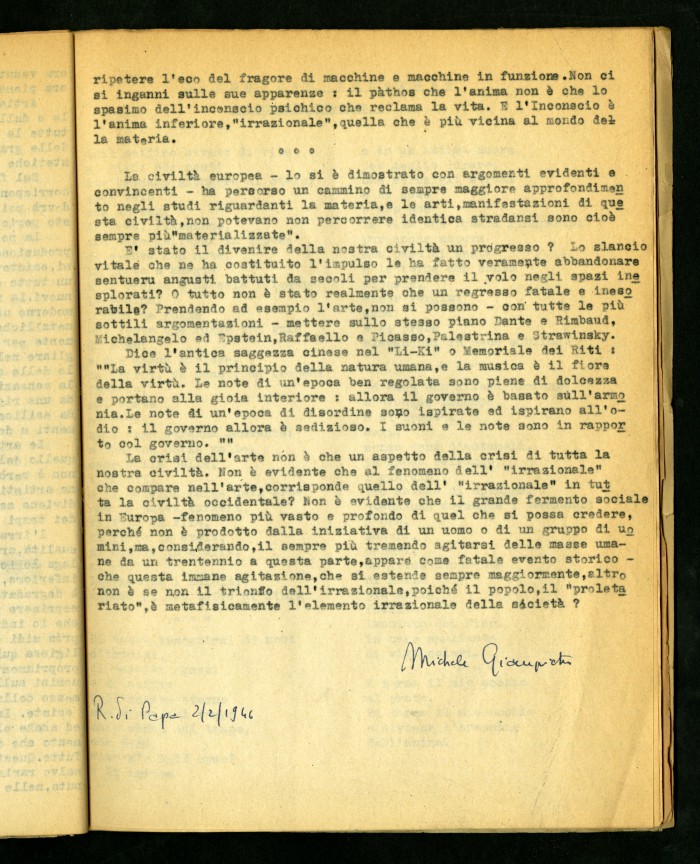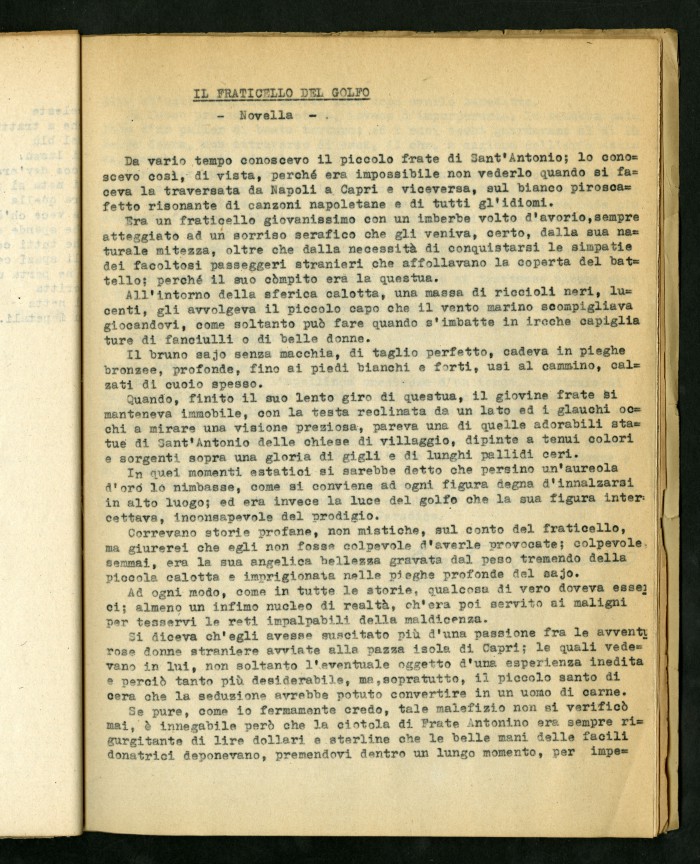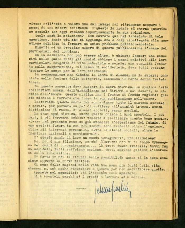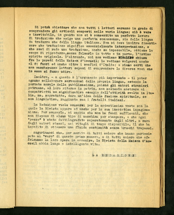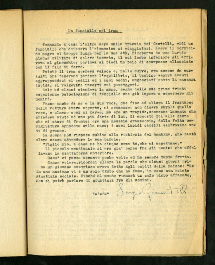 2) Articolo dattiloscritto di Luigi Meschieri dal titolo "Anatomia della fortuna" in "Risalire": rivista della Maison d'Accueil di Rocca di Papa, primo numero, febbraio 1946.
