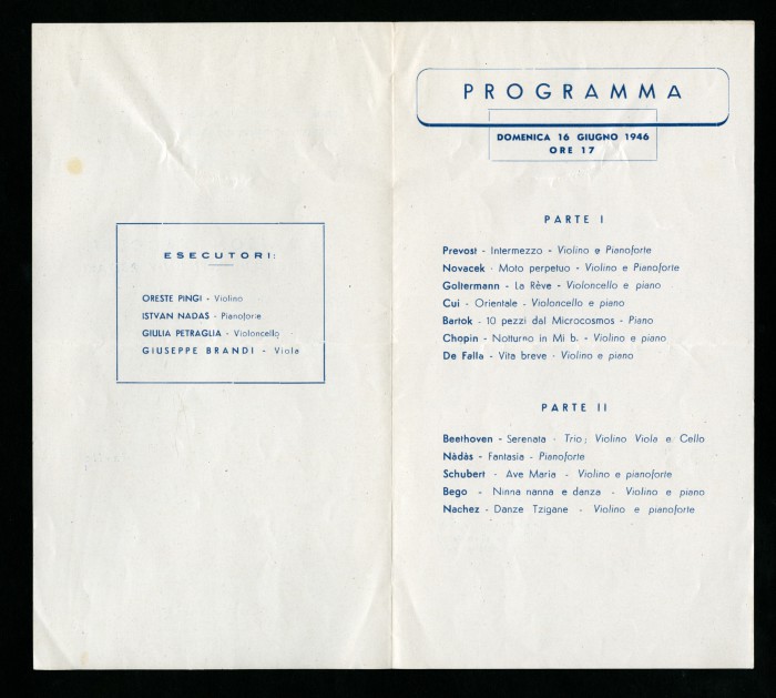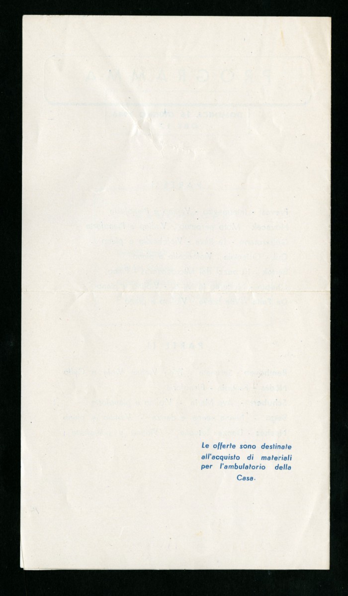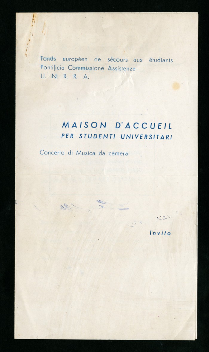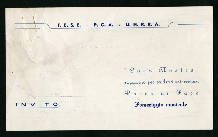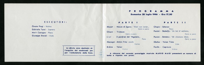 3) Due inviti a stampa per eventi musicali organizzati presso la casa di soggiorno, 16 giugno 1946 - 28 luglio 1946.