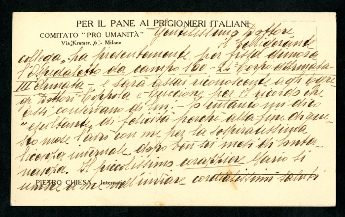 1) s.l., 16 dicembre 1916: fa riferimento ad un collega di Coppola di stanza presso l'Ospedaletto da campo 160 del 24° Corpo d'armata e invia i propri saluti allo stesso Coppola e al dottor Guccione;