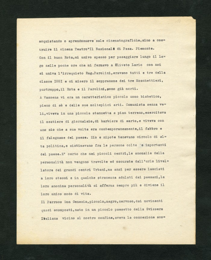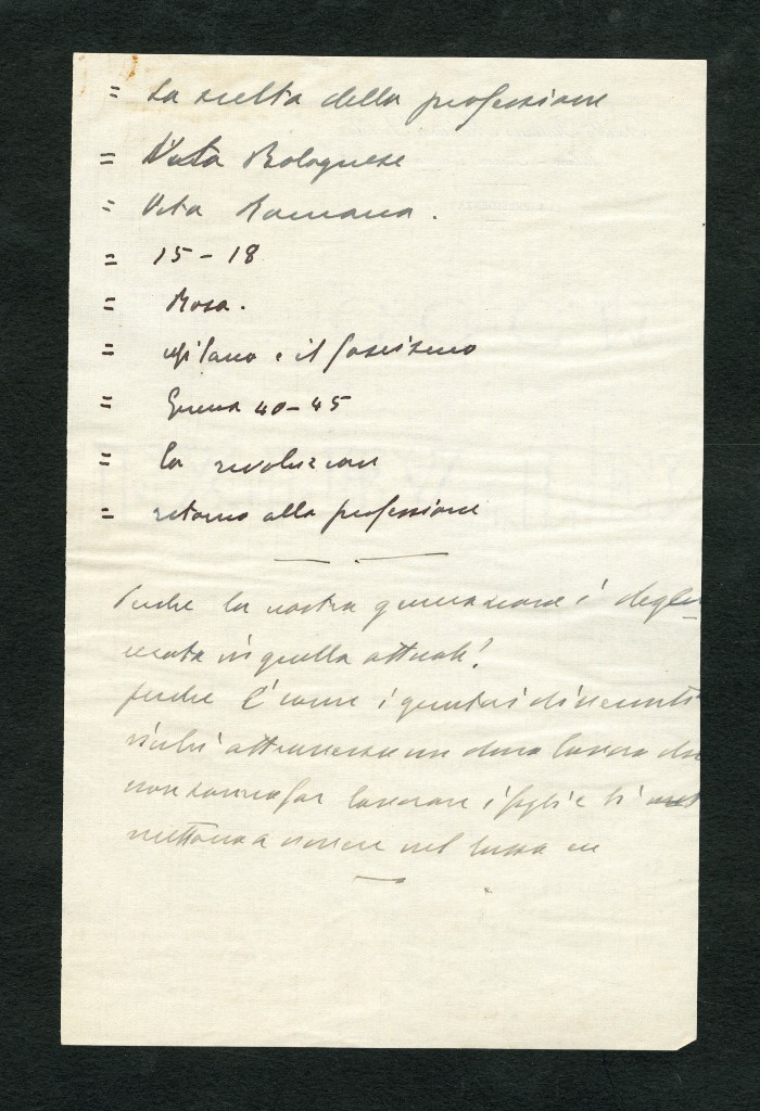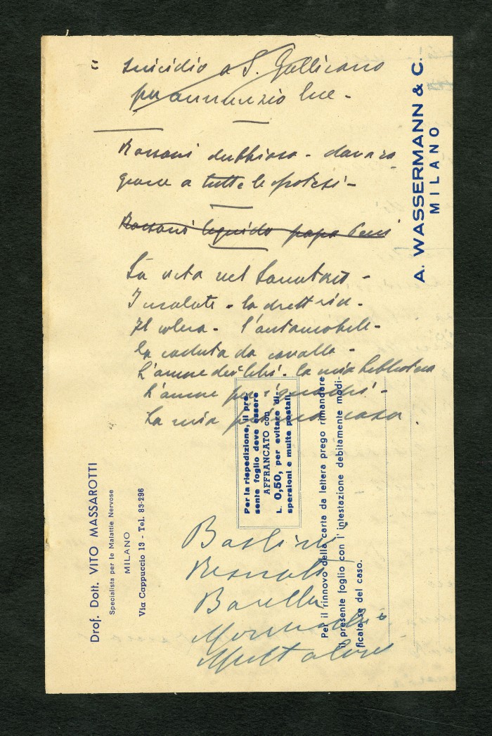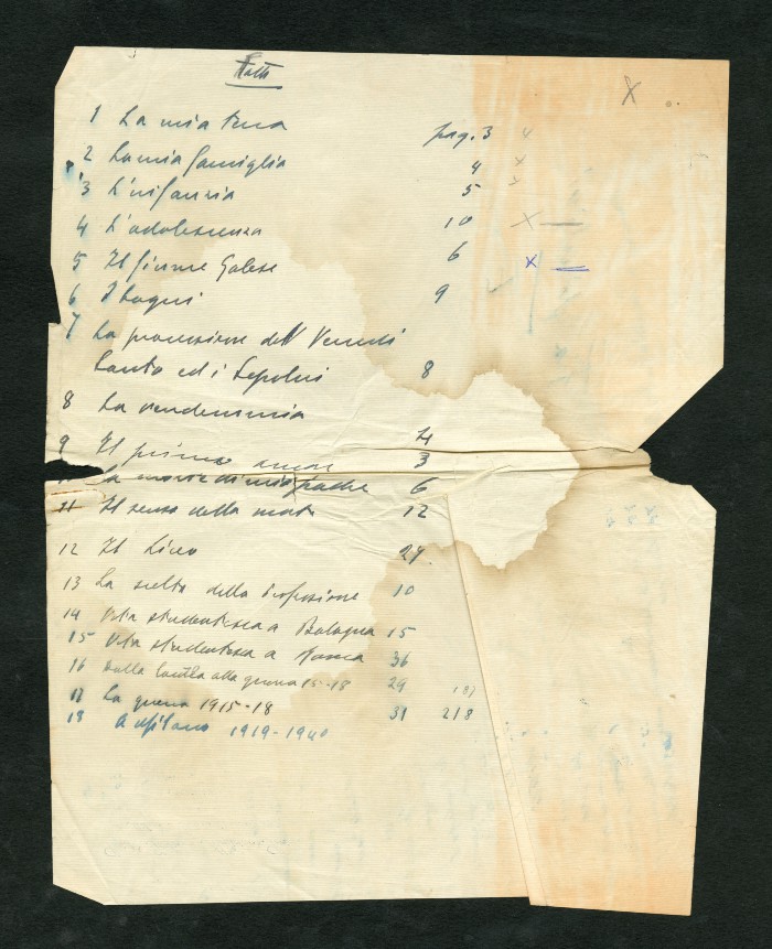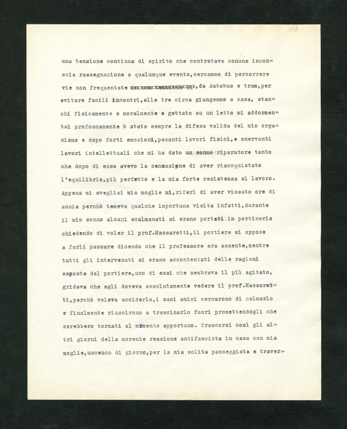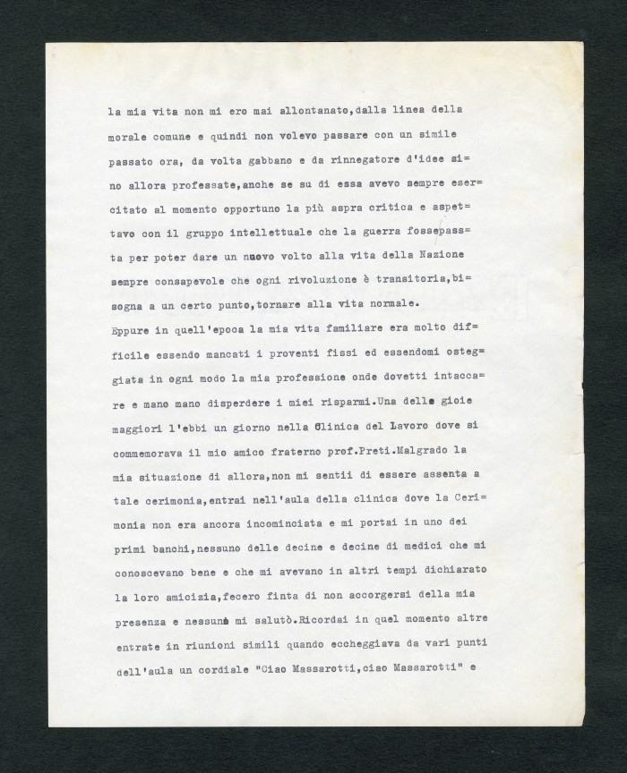 Manoscritto dell'autobiografia inedita di Massarotti, per la quale furono indicati diversi titoli possibili: "La tragedia di un galantuomo", "La vita di un galantuomo", "Riflessi di vita", "Galantuomo e realtà". Il sommario definitivo dei capitoli sembra essere il seguente: