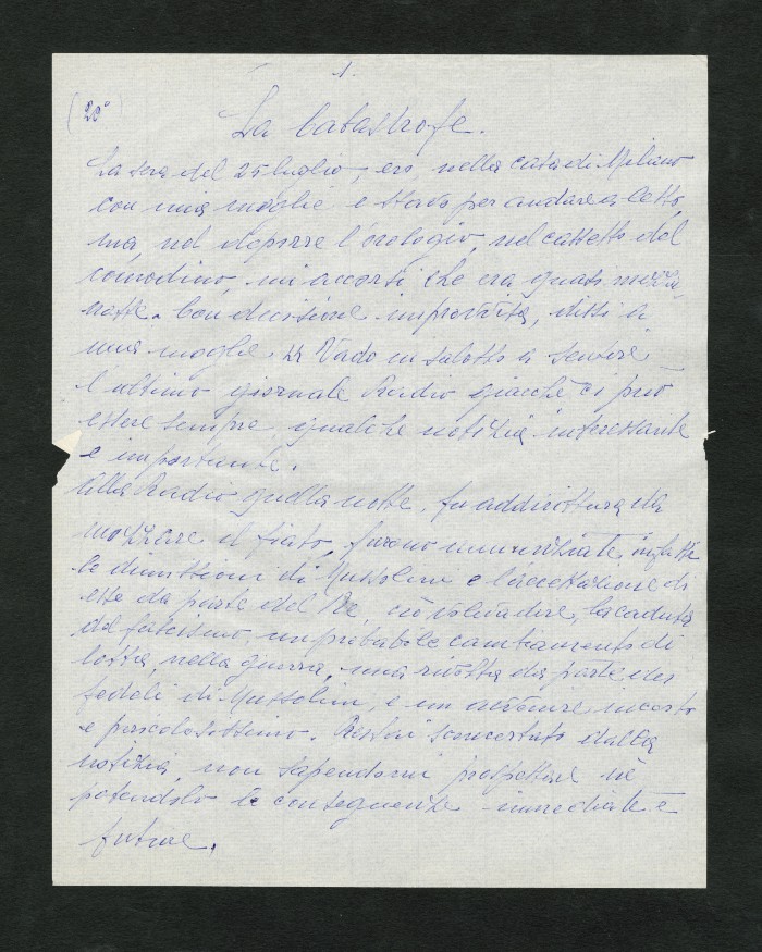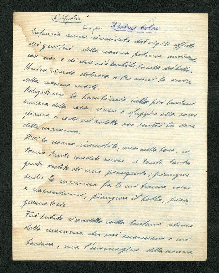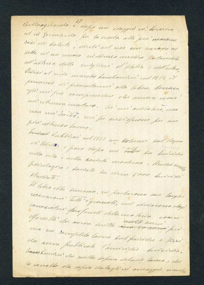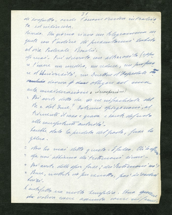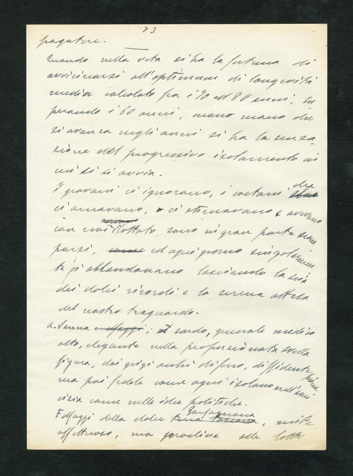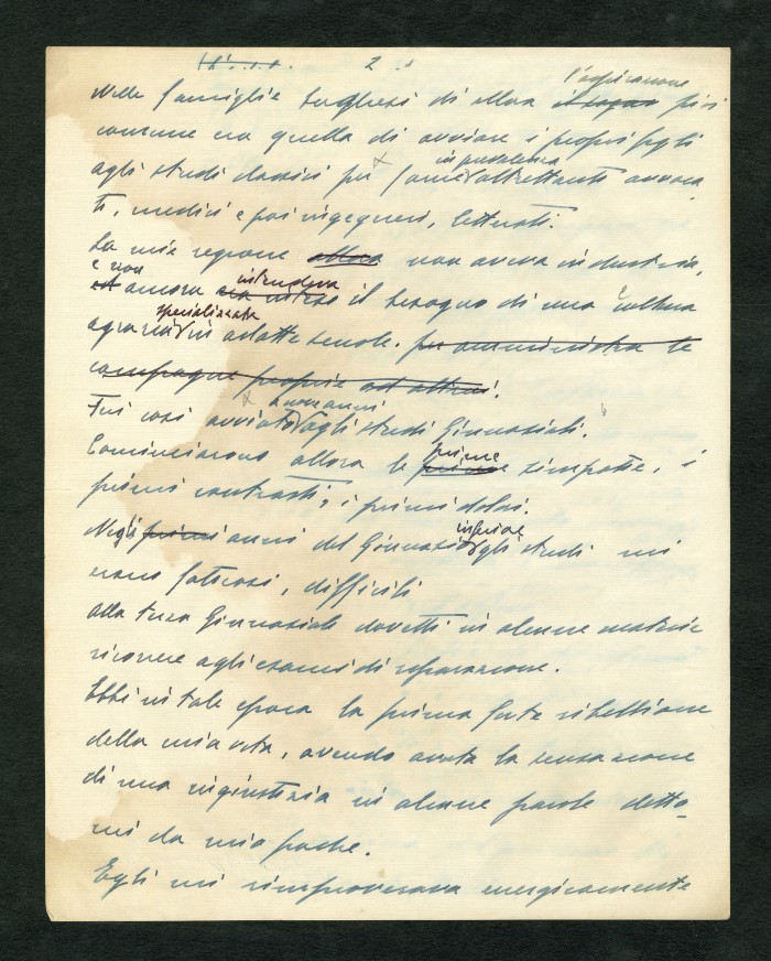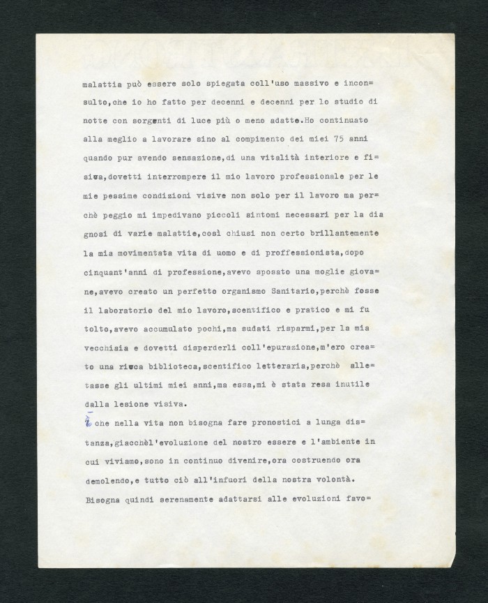 Manoscritto dell'autobiografia inedita di Massarotti, per la quale furono indicati diversi titoli possibili: "La tragedia di un galantuomo", "La vita di un galantuomo", "Riflessi di vita", "Galantuomo e realtà". Il sommario definitivo dei capitoli sembra essere il seguente: