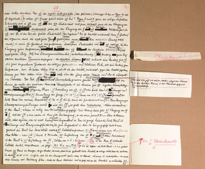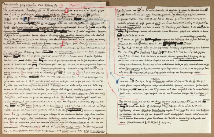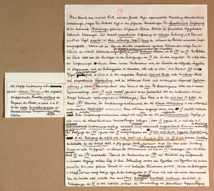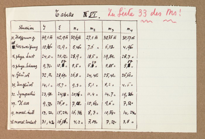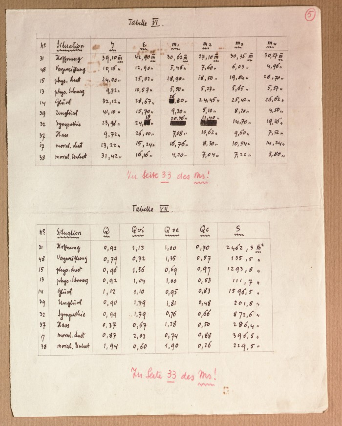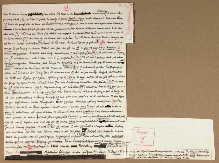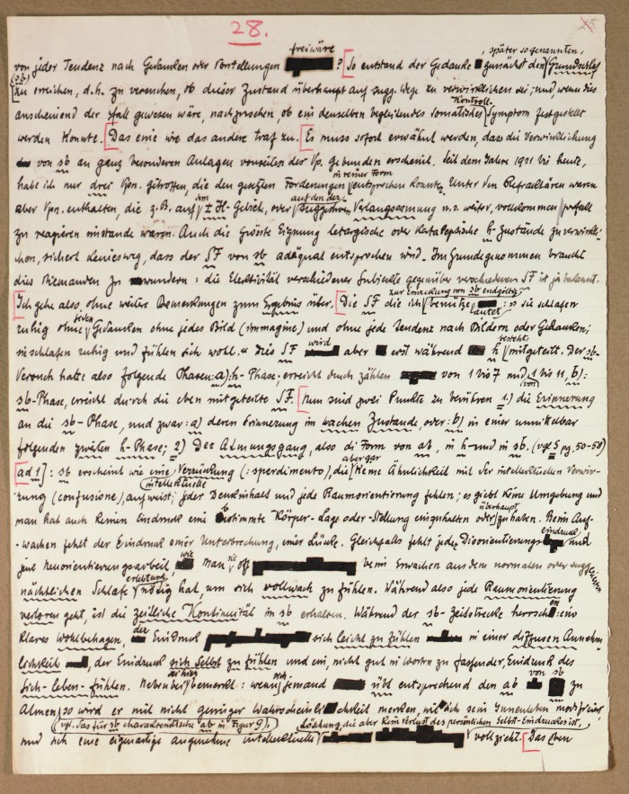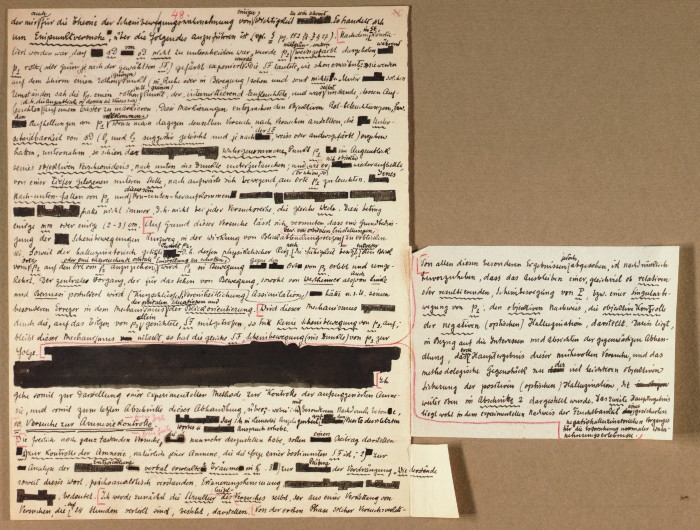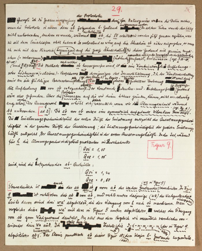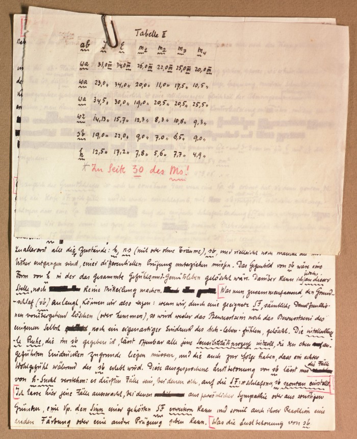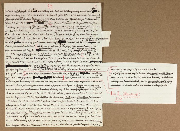 Il fascicolo contiene le bozze manoscritte di “Zur experimentellen Grundlegung hypno-suggestiever Methoden psychischer Analyse” (Fondamenti sperimentali di metodi ipno-suggestivi di analisi psichica), pubblicate in Psychologische Forschung, 9 (1927), 197-274.
