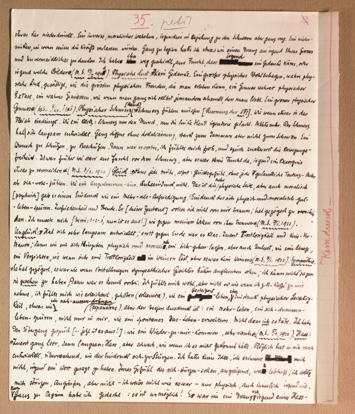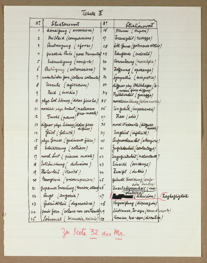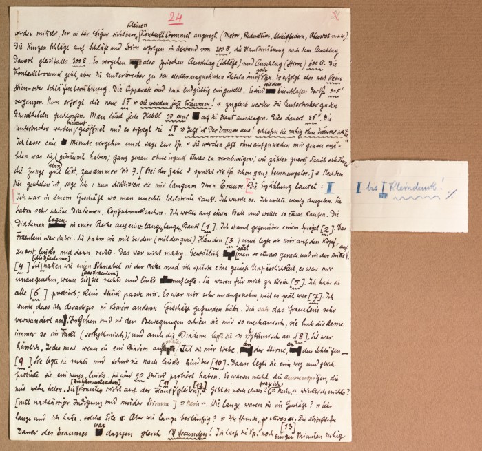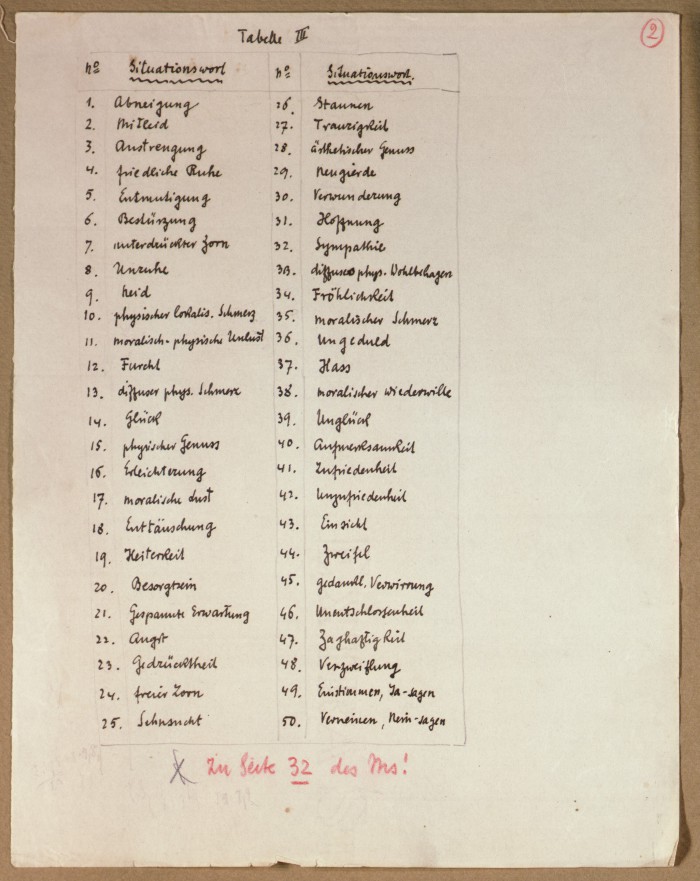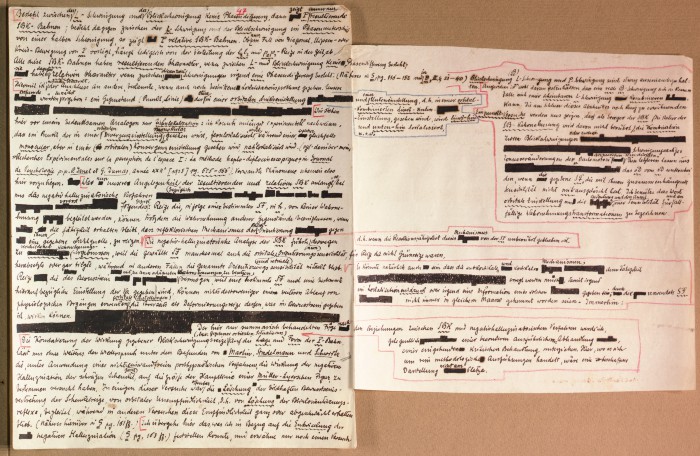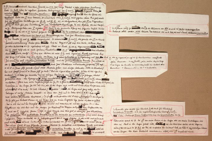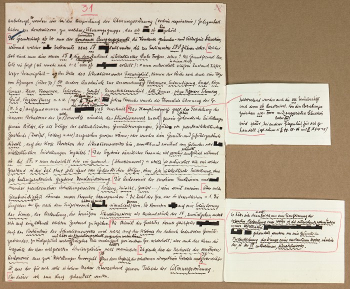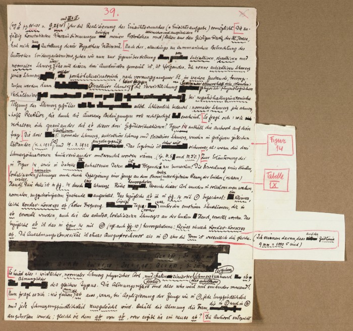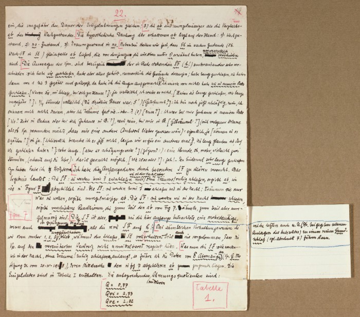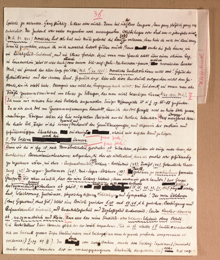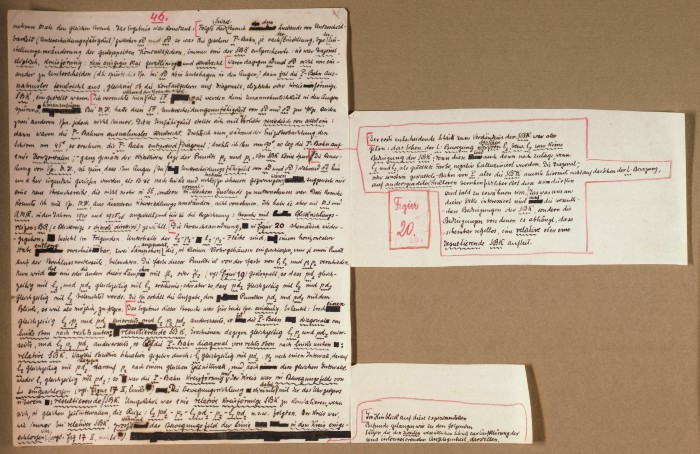 Il fascicolo contiene le bozze manoscritte di “Zur experimentellen Grundlegung hypno-suggestiever Methoden psychischer Analyse” (Fondamenti sperimentali di metodi ipno-suggestivi di analisi psichica), pubblicate in Psychologische Forschung, 9 (1927), 197-274.