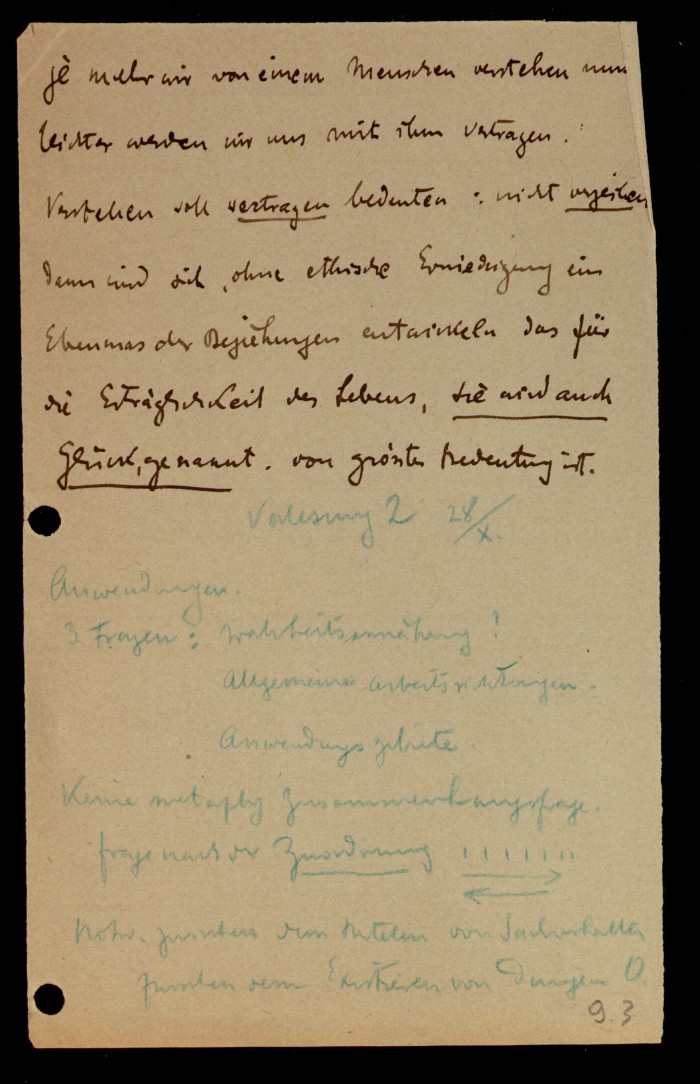 Una carta reca il seguente testo manoscritto (si riporta la traduzione dal tedesco):