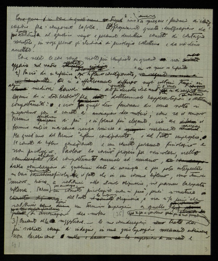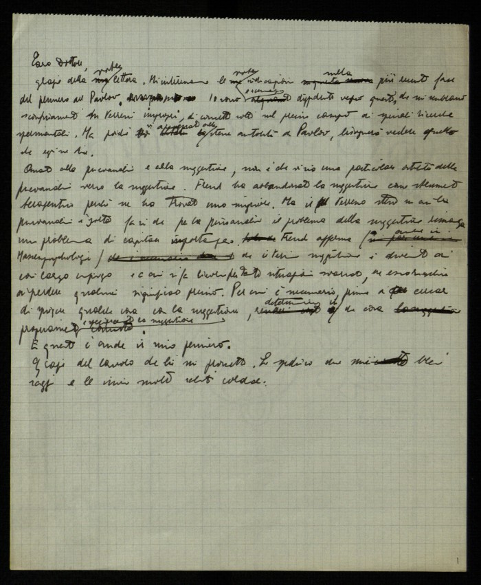 1) [s.l., s.d.]: ringrazia della lettera ricevuta e ribatte in maniera dettagliata alle considerazioni ivi contenute sul tema dei riflessi condizionati nell'ultimo Pavlov e sull'impiego del concetto di suggestione nell'ambito della psicologia delle folle.