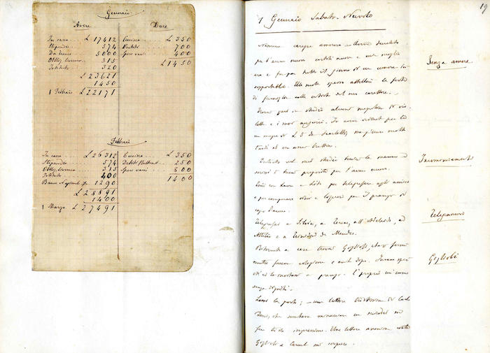 Si segnala la presenza, tra le pagine del Giornale e in appendice ad esso, di: lettere, biglietti, telegrammi, ricevute di natura economica, ritagli di articoli di giornale.